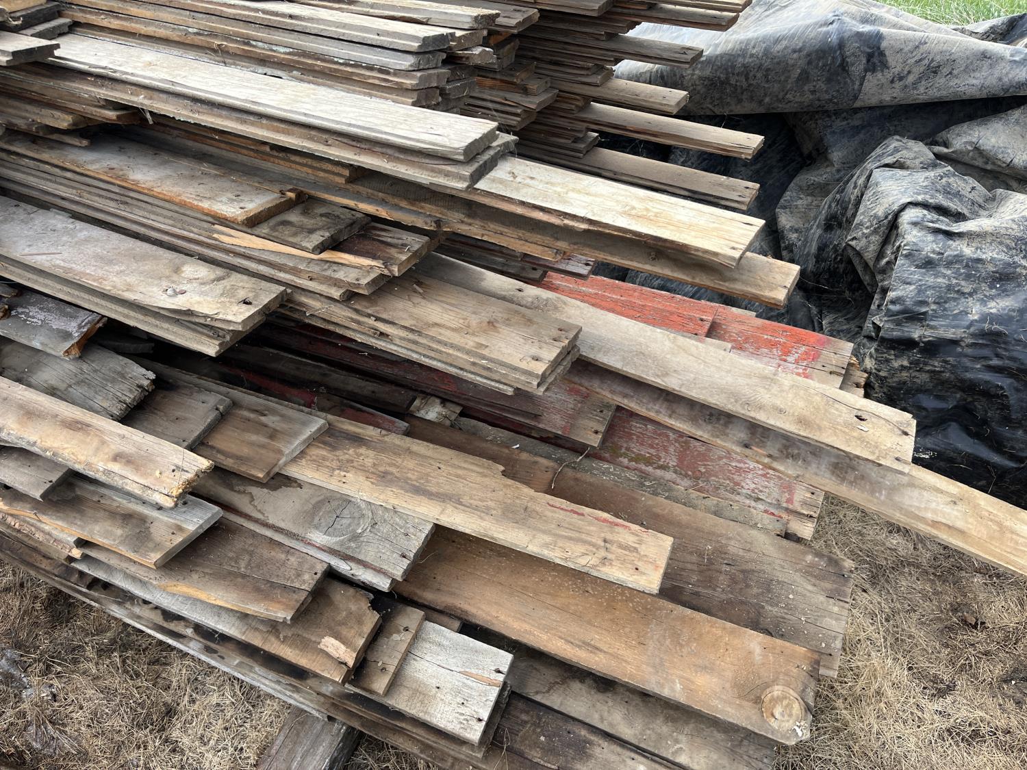 Has been tarped and covered since removal, tongue and groove, ship lap, miscellaneous boards