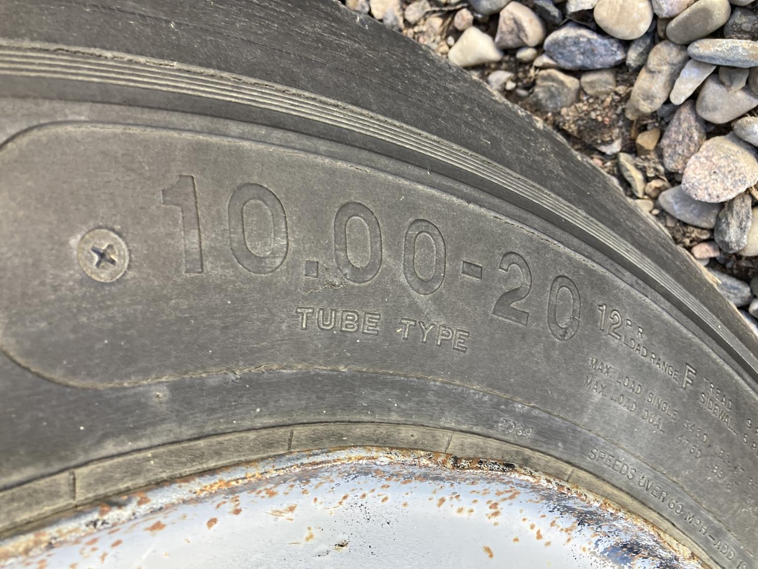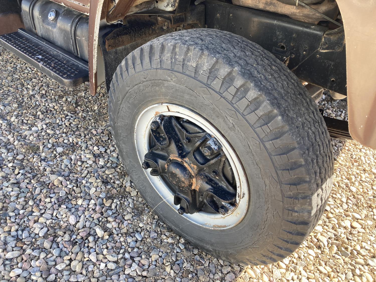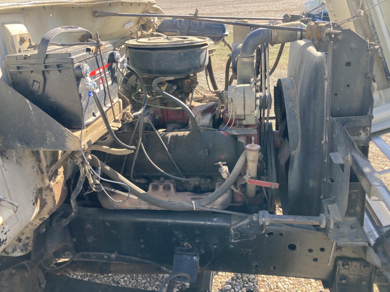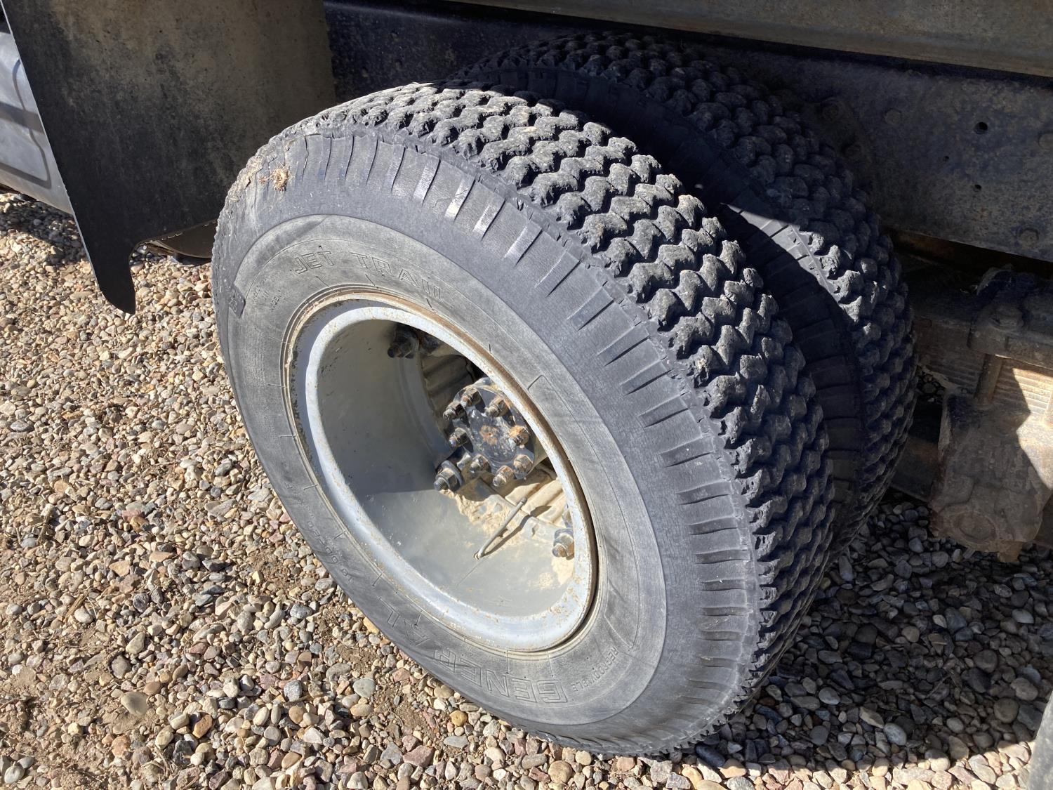 V8 gas engine, 5 & 4 manual transmission, 17 ft box, hoist, roll tarp, spring suspension, 188 inch WB, 10.00-20 tires