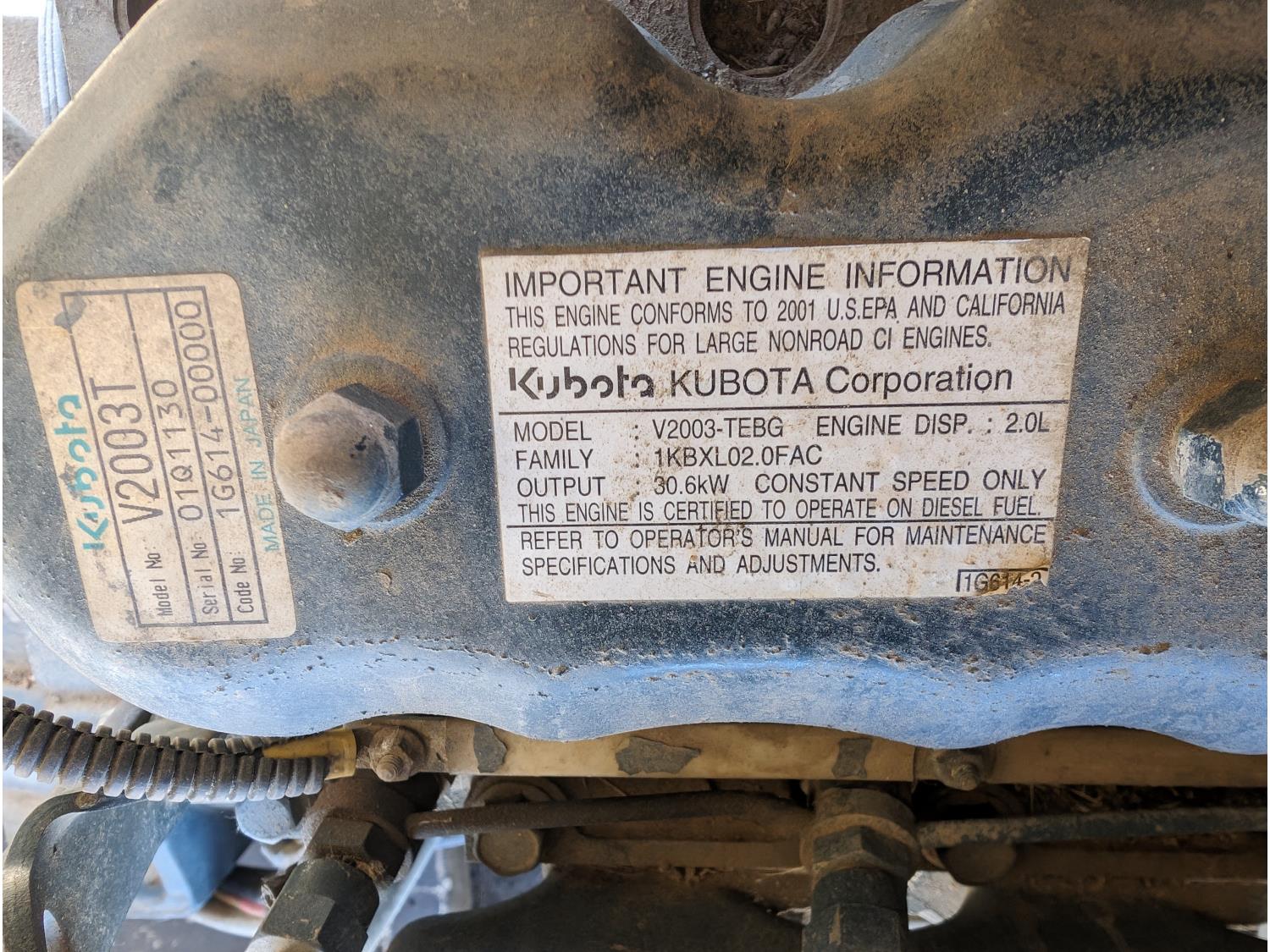 Kubota 4 cylinder diesel engine, 240 V, PH 1