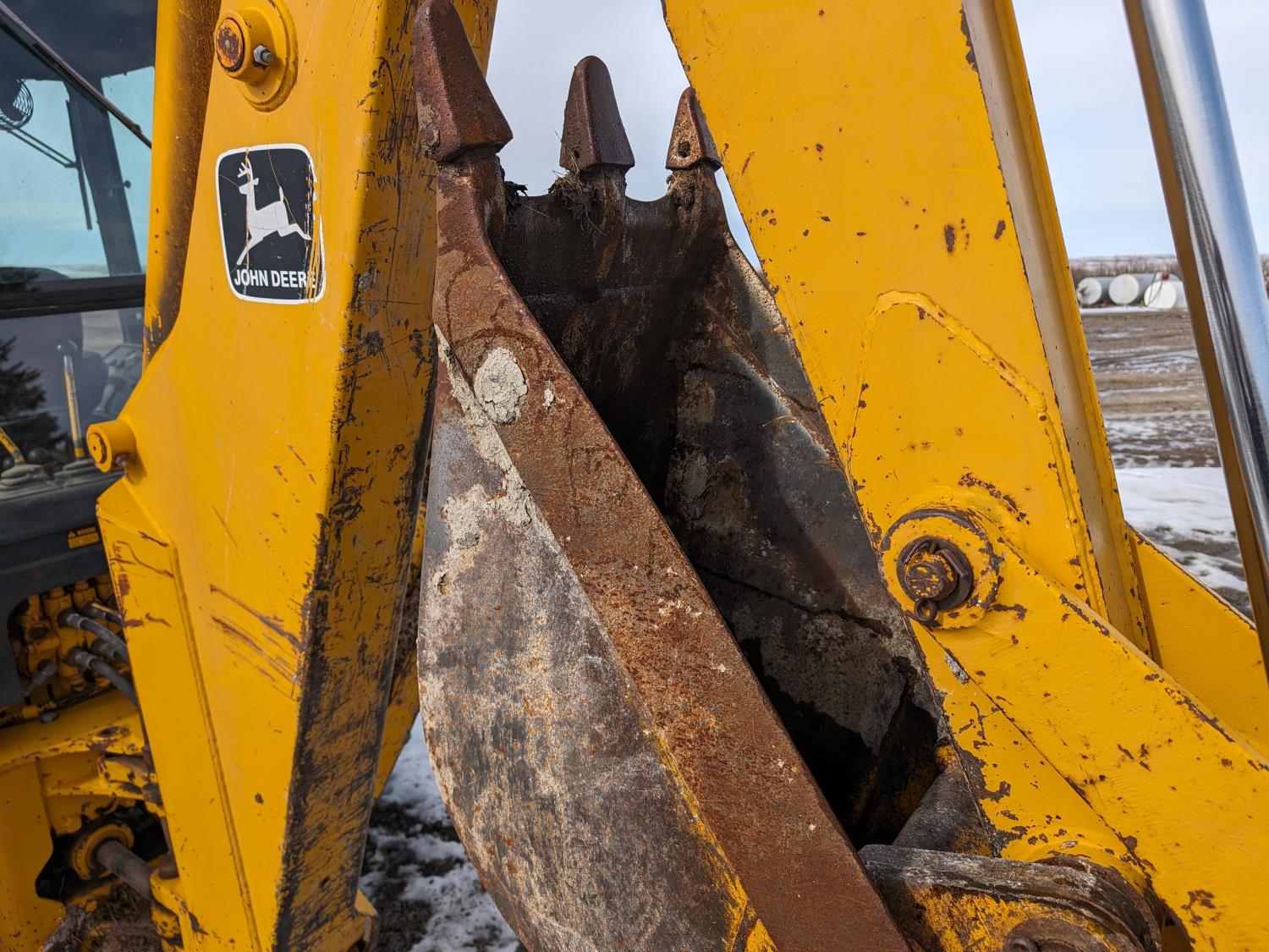 Enclosed cab, manual transmission, 92 inch loader bucket, 18 inch dig backhoe bucket, outriggers, 265/75R16 front tires, 16.9-24 rear tires