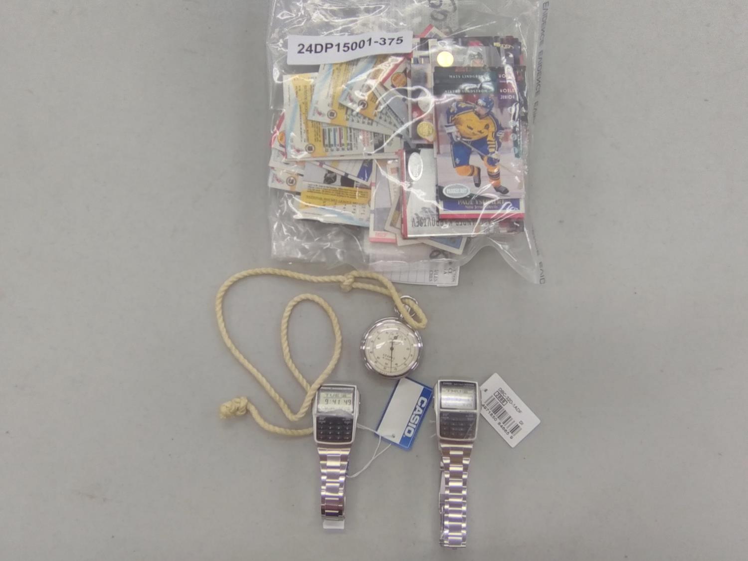 1060 Hockey Cards, (2) Calculator Watches & Pocket Watch