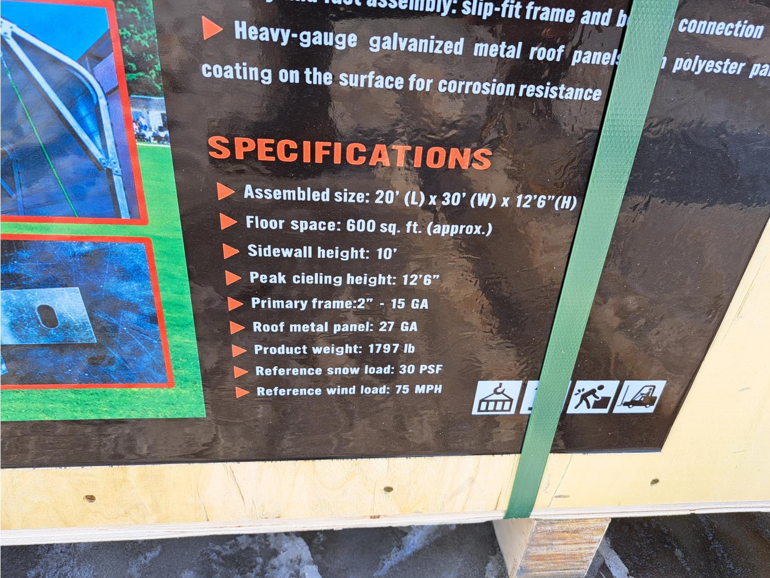 37 2024 Diggit MSC2030F 20 Ft X 30 Ft Metal Garage Car Port (Unused)