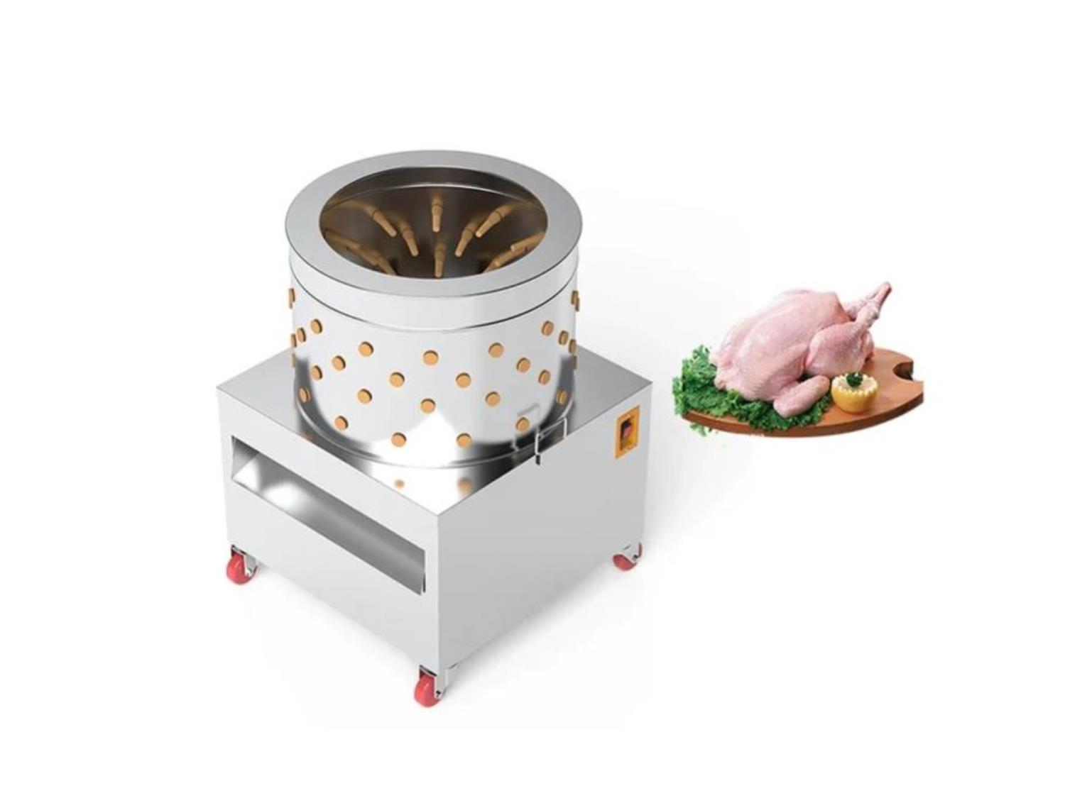 Stainless steel drum, castor wheels, feather discharge chute