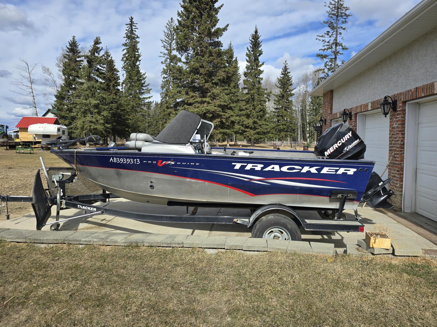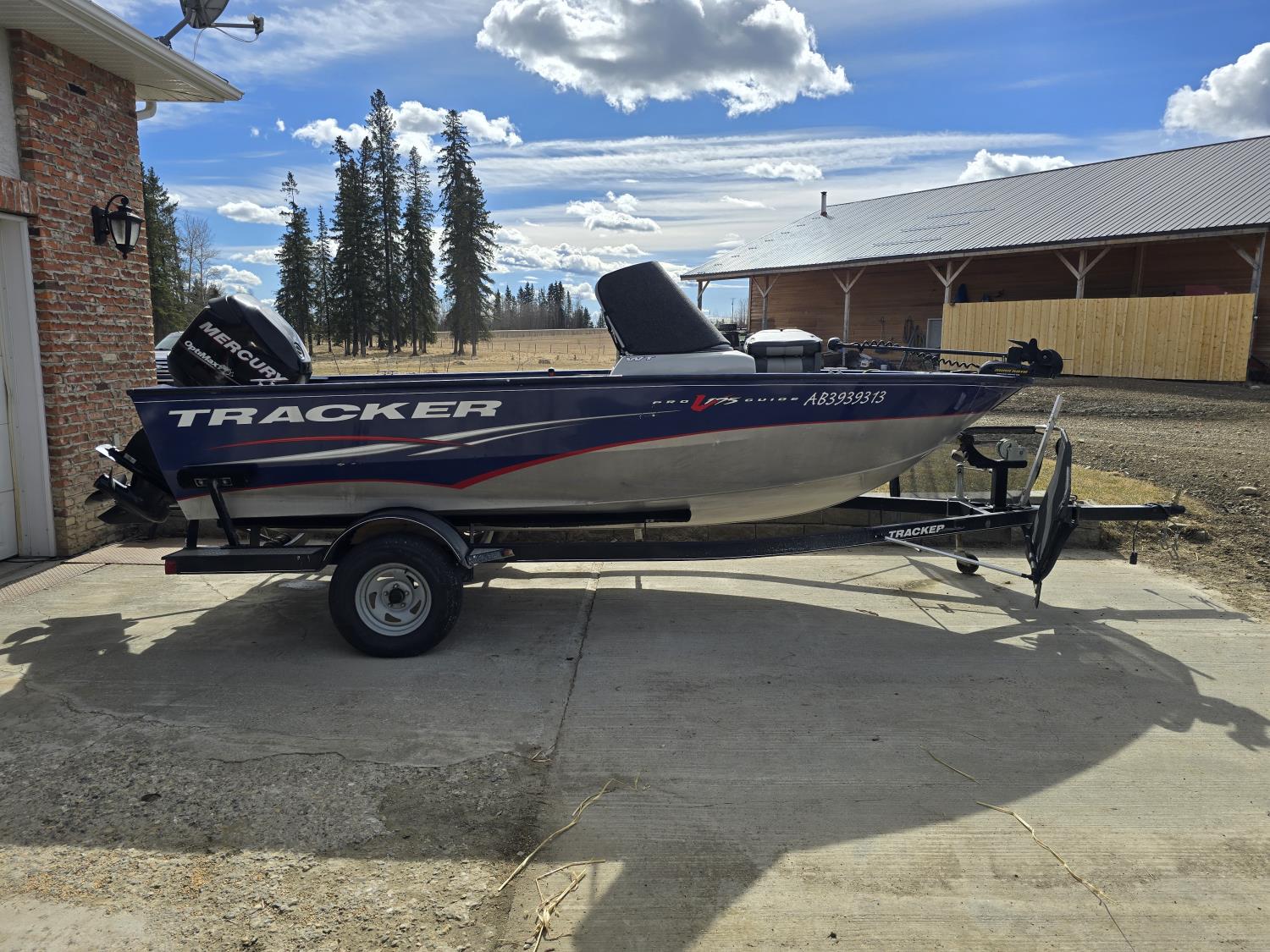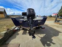 90 HP Mercury motor, open bow, electric trolling motor, fish finder, c/w trailer
