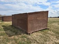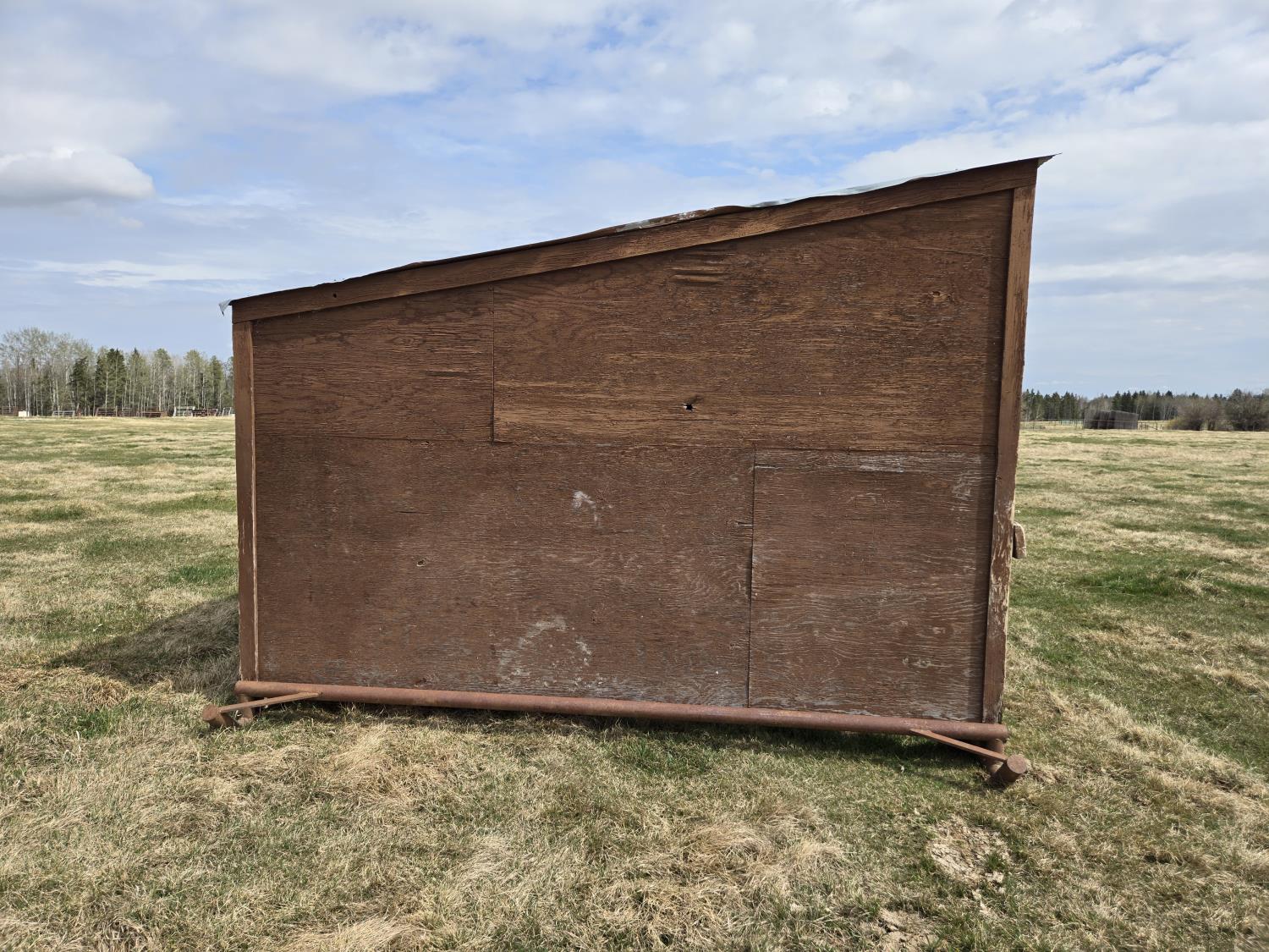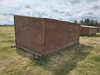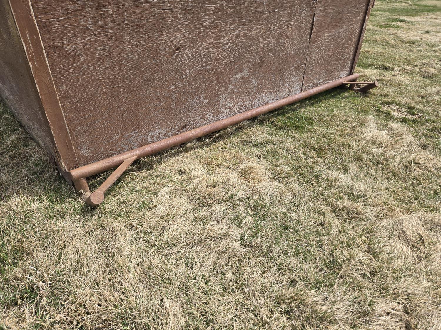 12 ft wide, 2-7/8 inch pipe skids, metal roof, wood construction