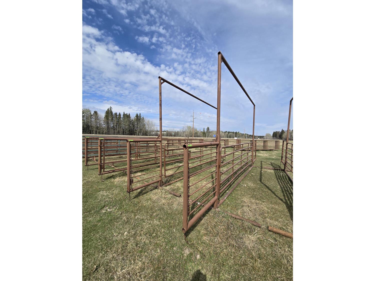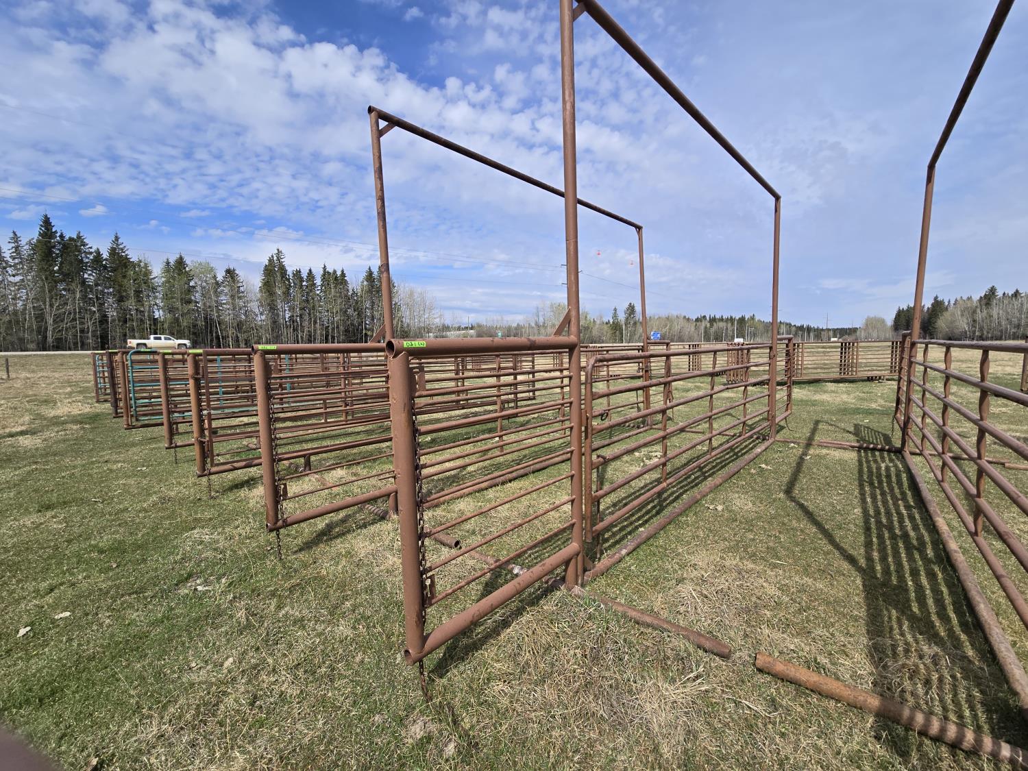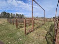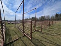 201 (2) 24 Ft Free Standing Livestock Panels with Overhead Frame with16 Ft Gate