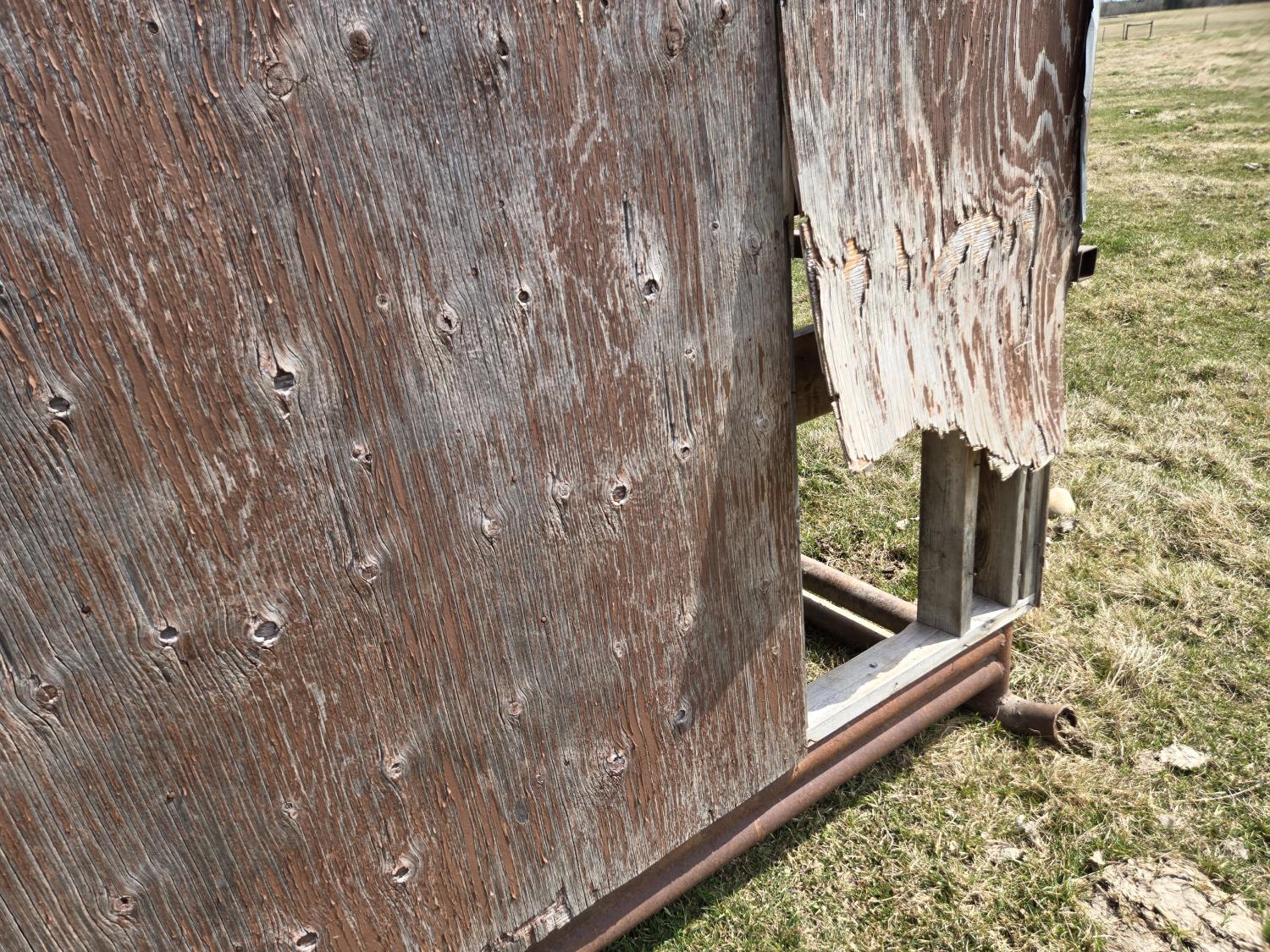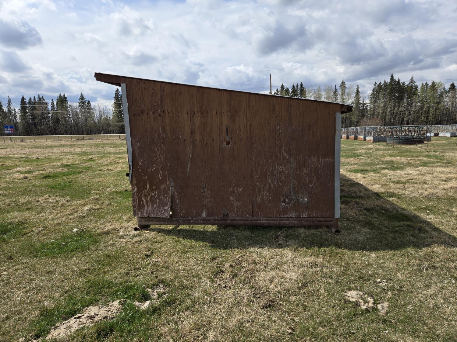 10 ft wide, 2-7/8 inch pipe frame skids, metal roof, wood construction