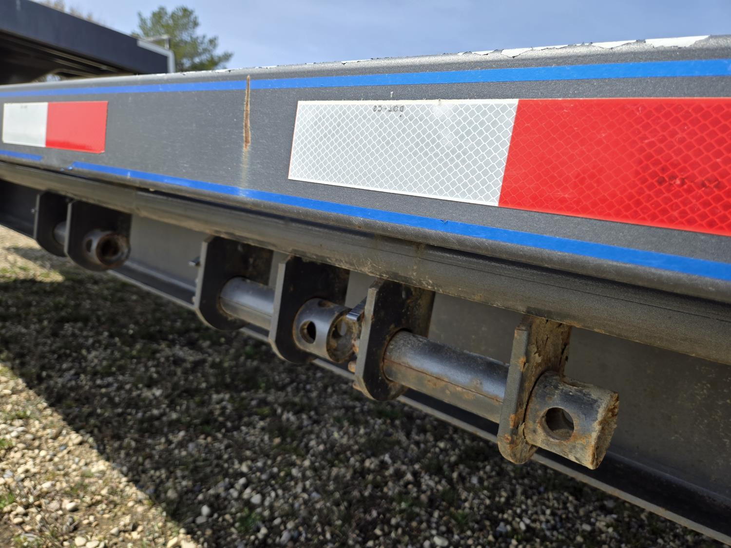 100 inch wide deck, wood deck, flip over ramps, electric brakes, torsion suspension, ball hitch, stake pockets, (4) sliding load winches, under deck storage box, 6' X 4' upper deck, dual jacks, rear bale rack, rear center pop up, 235/85R16 tires