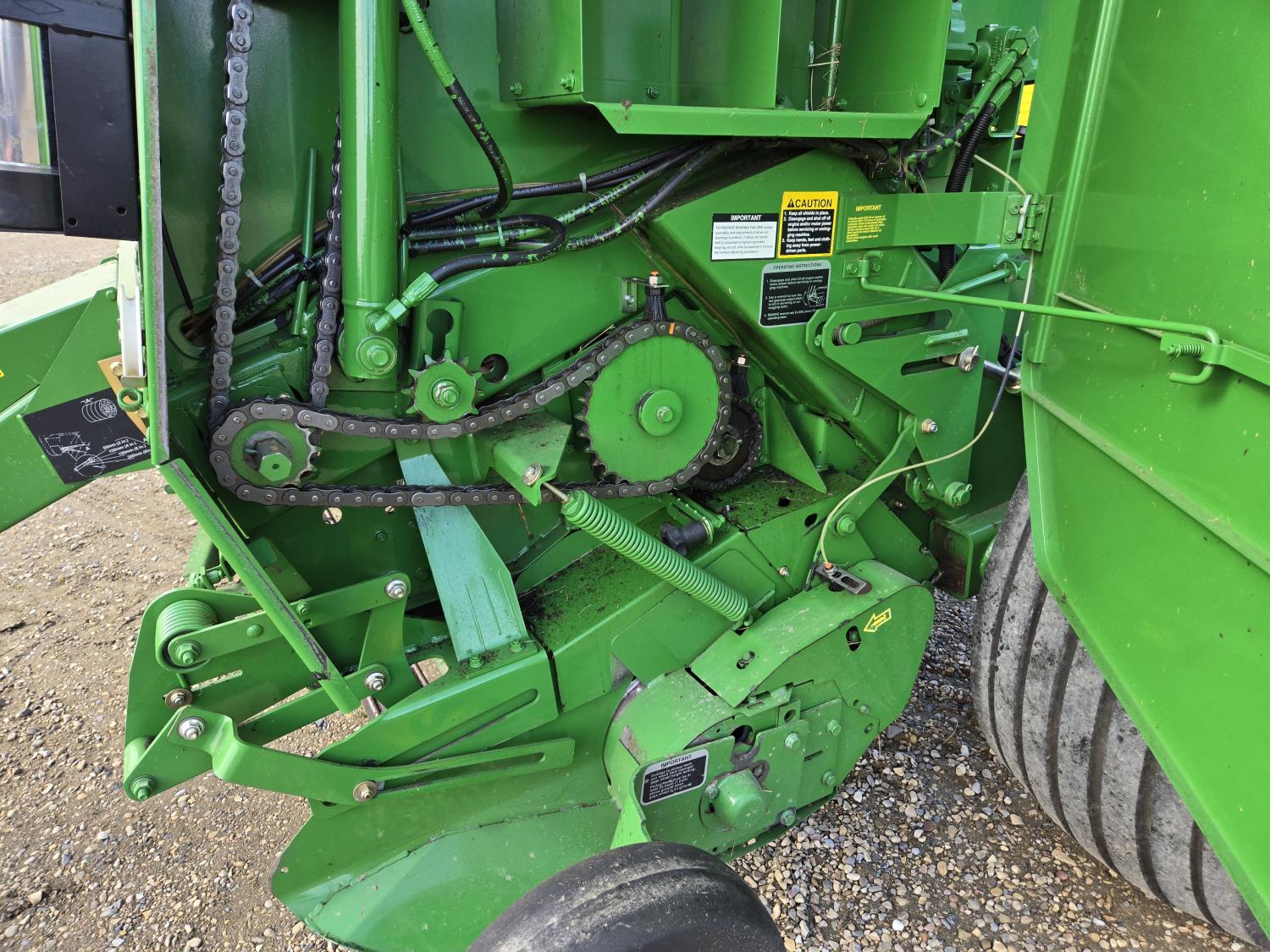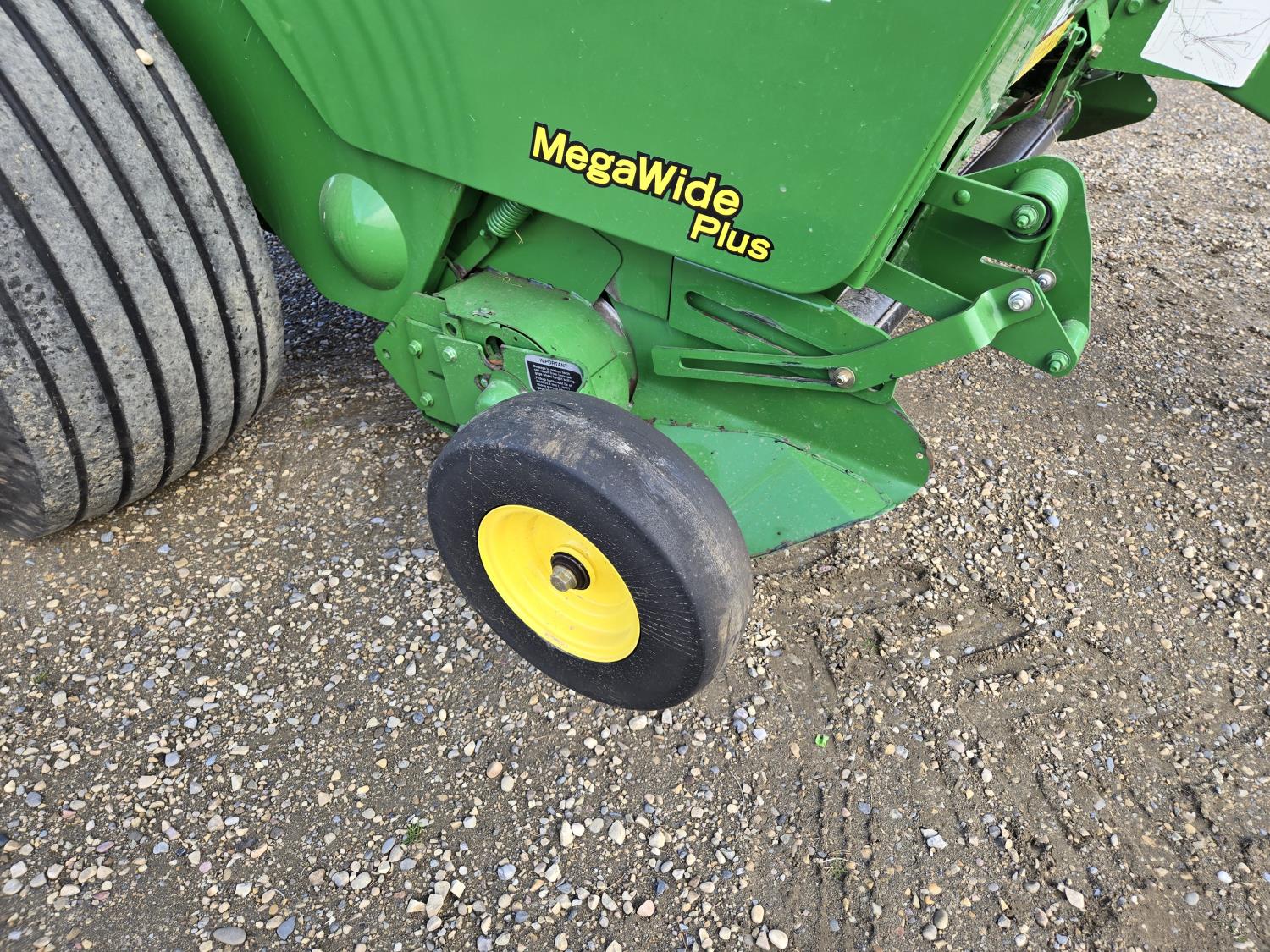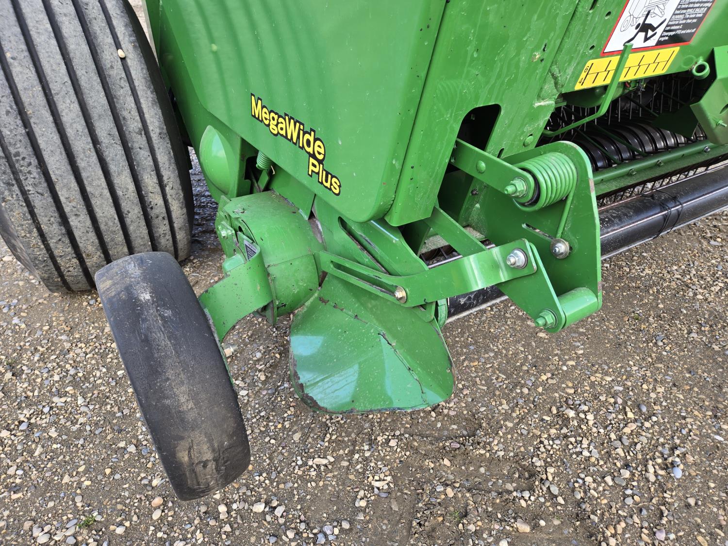 1000 PTO, Mega Wide, 78 inch pickup, hydraulic lift, (2) gauge wheels, 5x6 ft bale size, twine tie or net wrap, monitor, kicker, light kit, 6,000 bale count, swath depressor, auto chain lubrication, fire extinguisher, 21.5-16.1SL tires