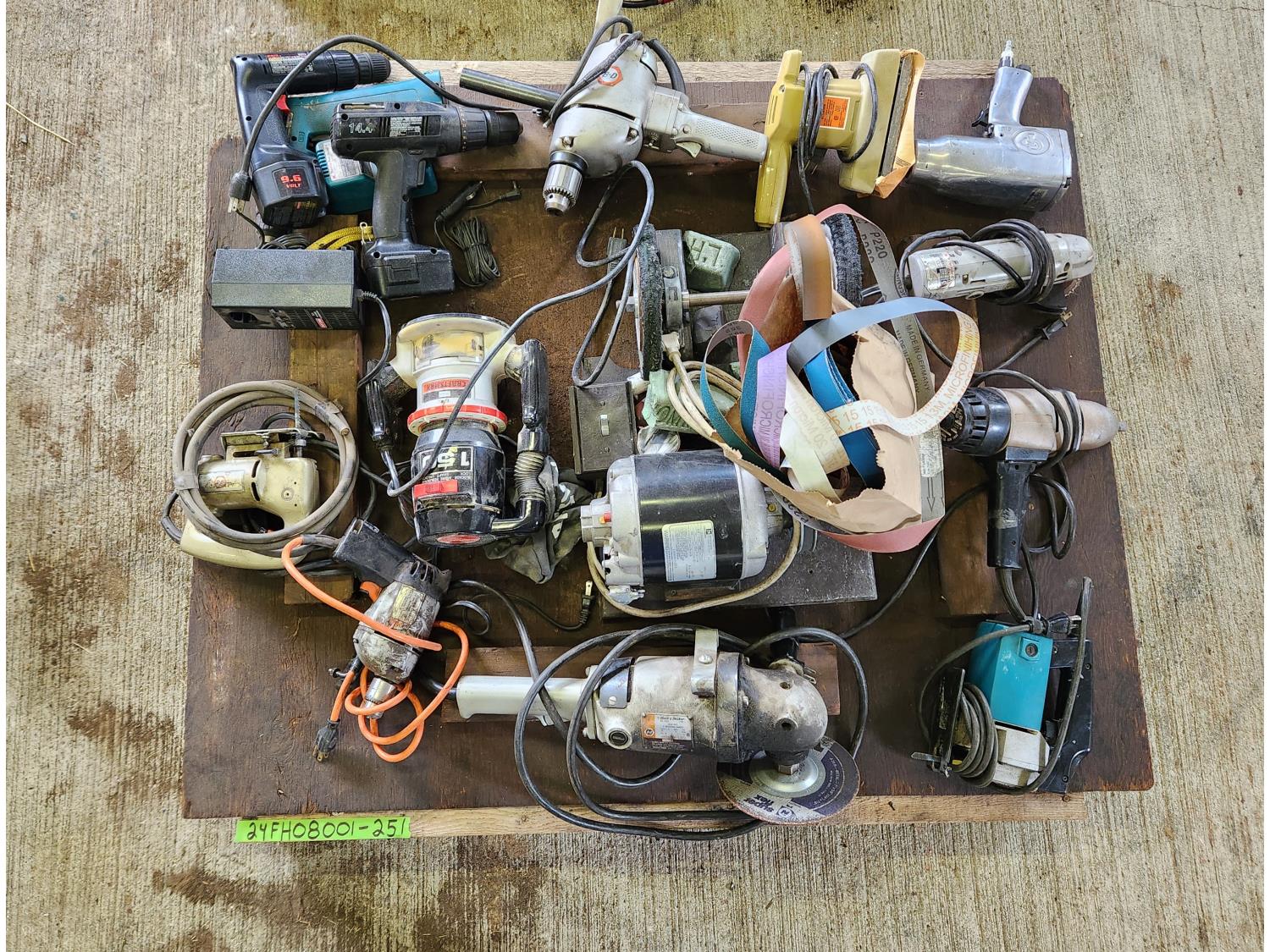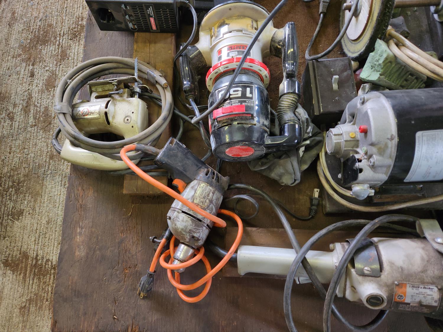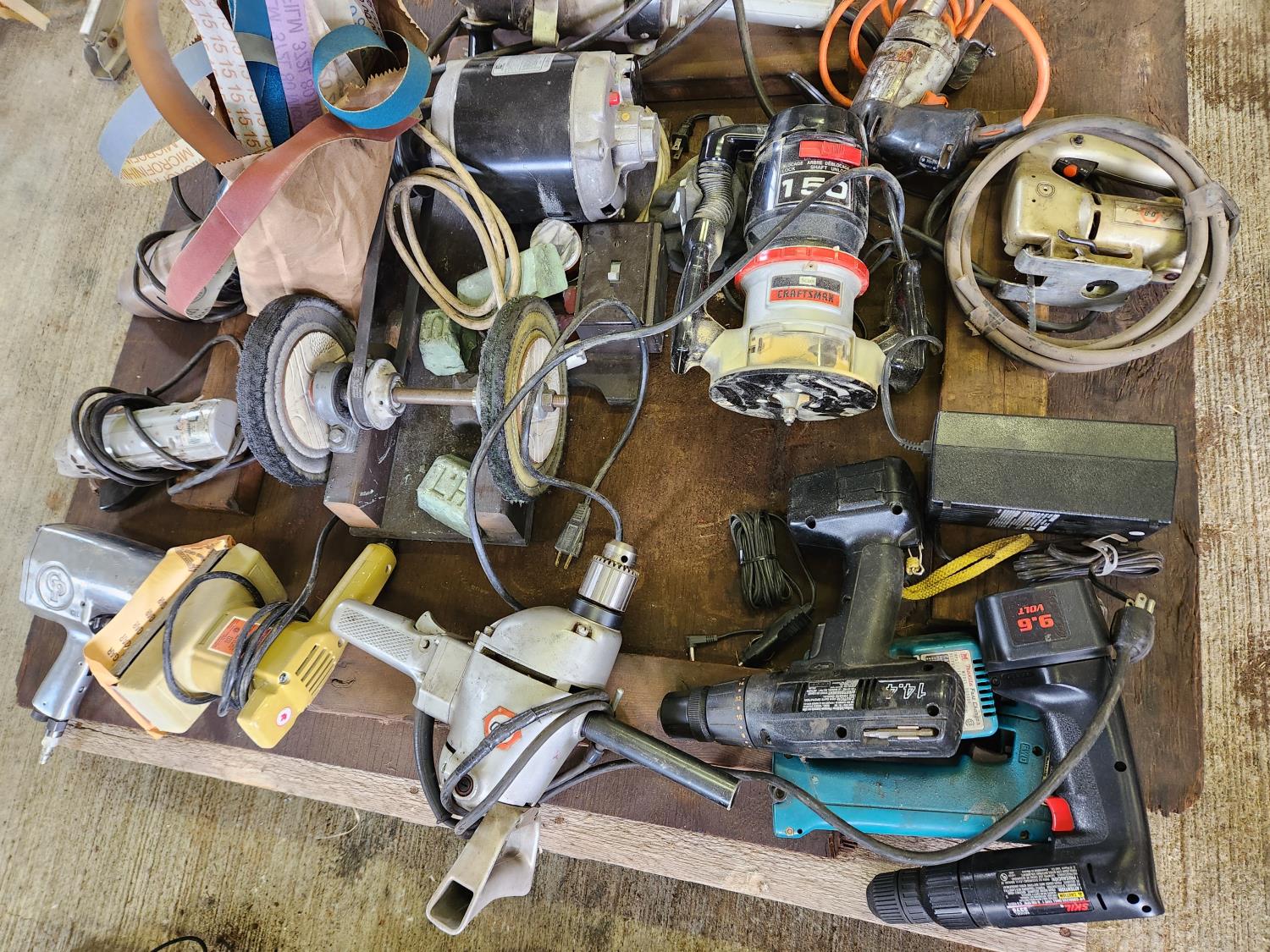 Drills, grinders, router, buffer, impact wrenches, sander, jig saws