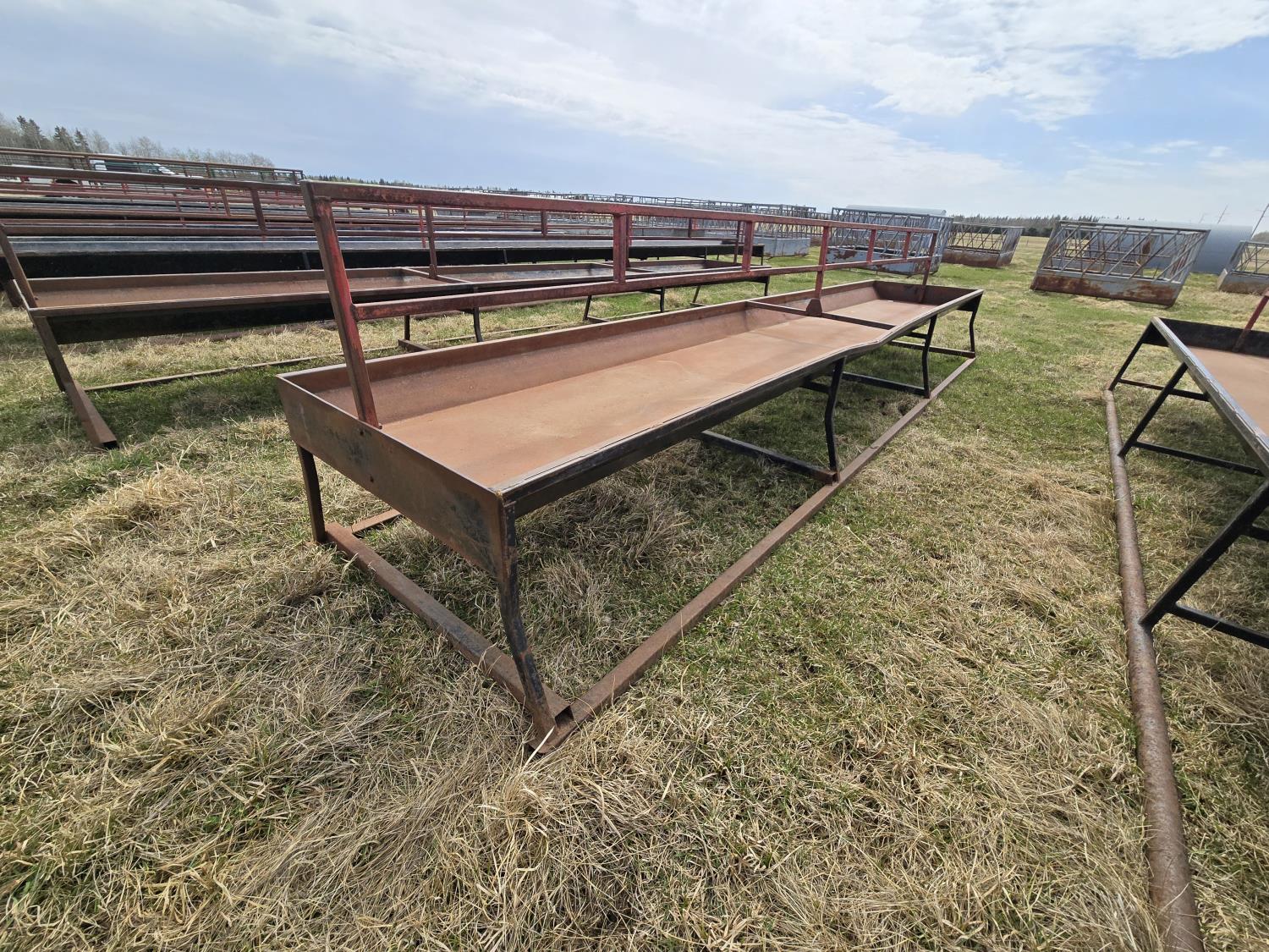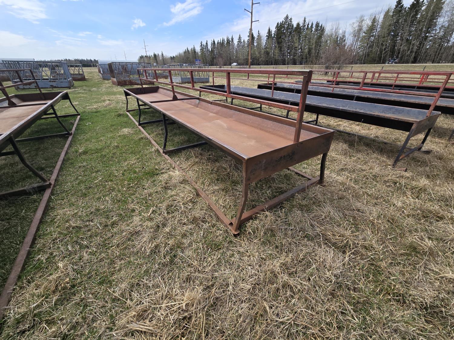 Square tube skids, square tube frame, 40 inch wide metal feed bunk trough, center two rail barrier