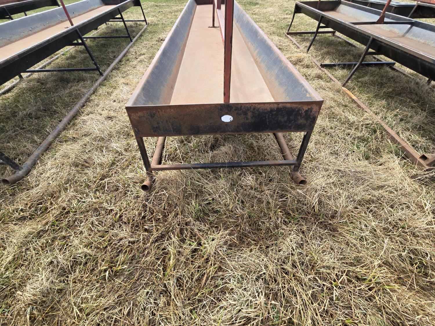 Pipe skids, square tube frame, 40 inch wide metal feed bunk trough, center two rail barrier