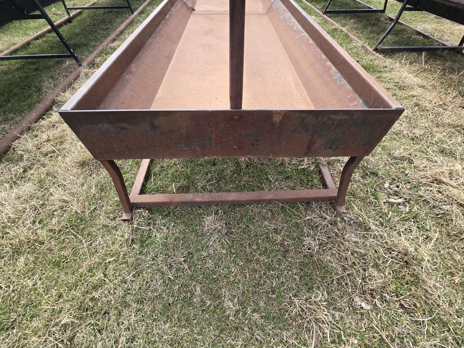 Square tube skids, square tube frame, 40 inch wide metal feed bunk trough, center two rail barrier