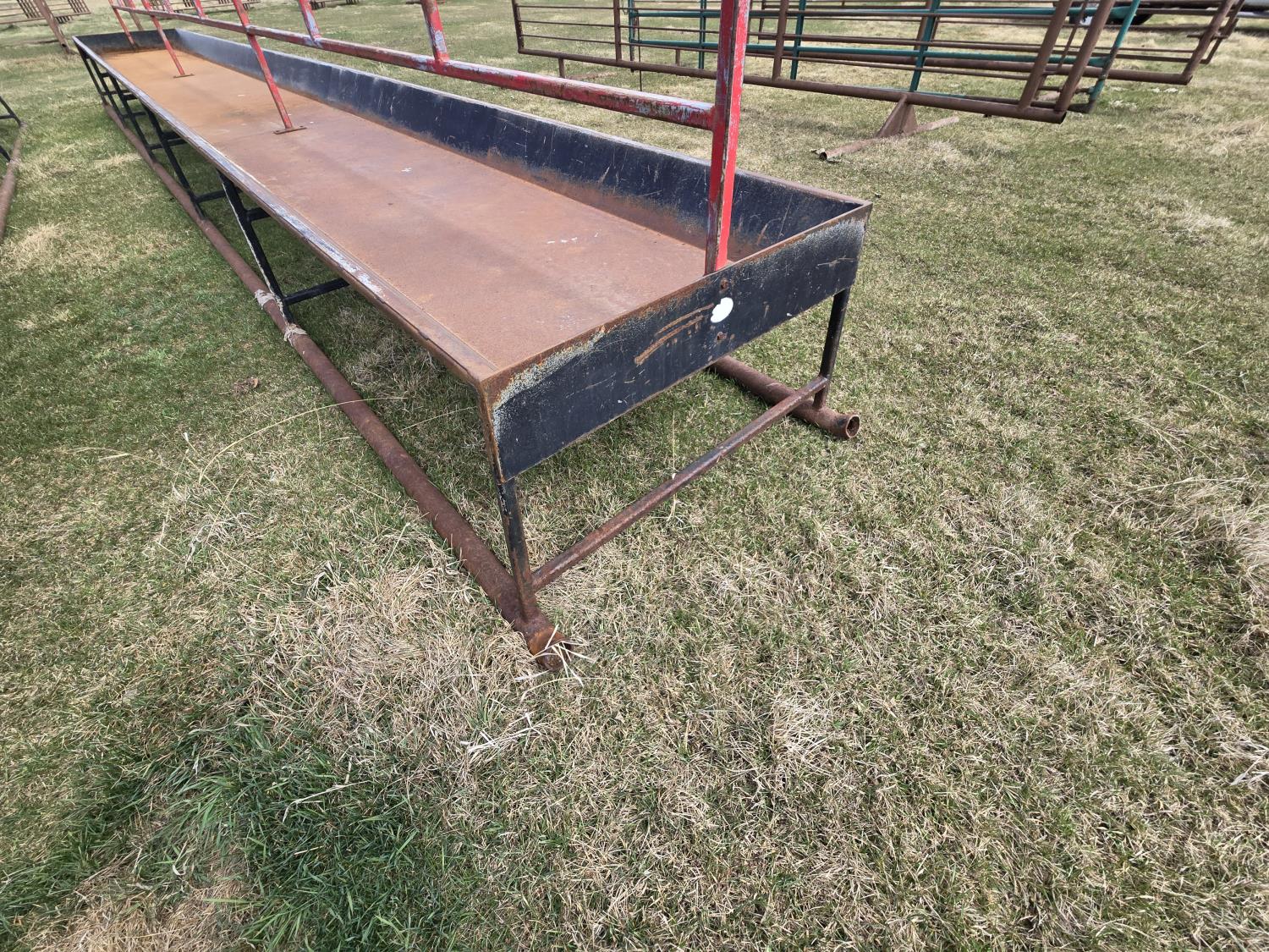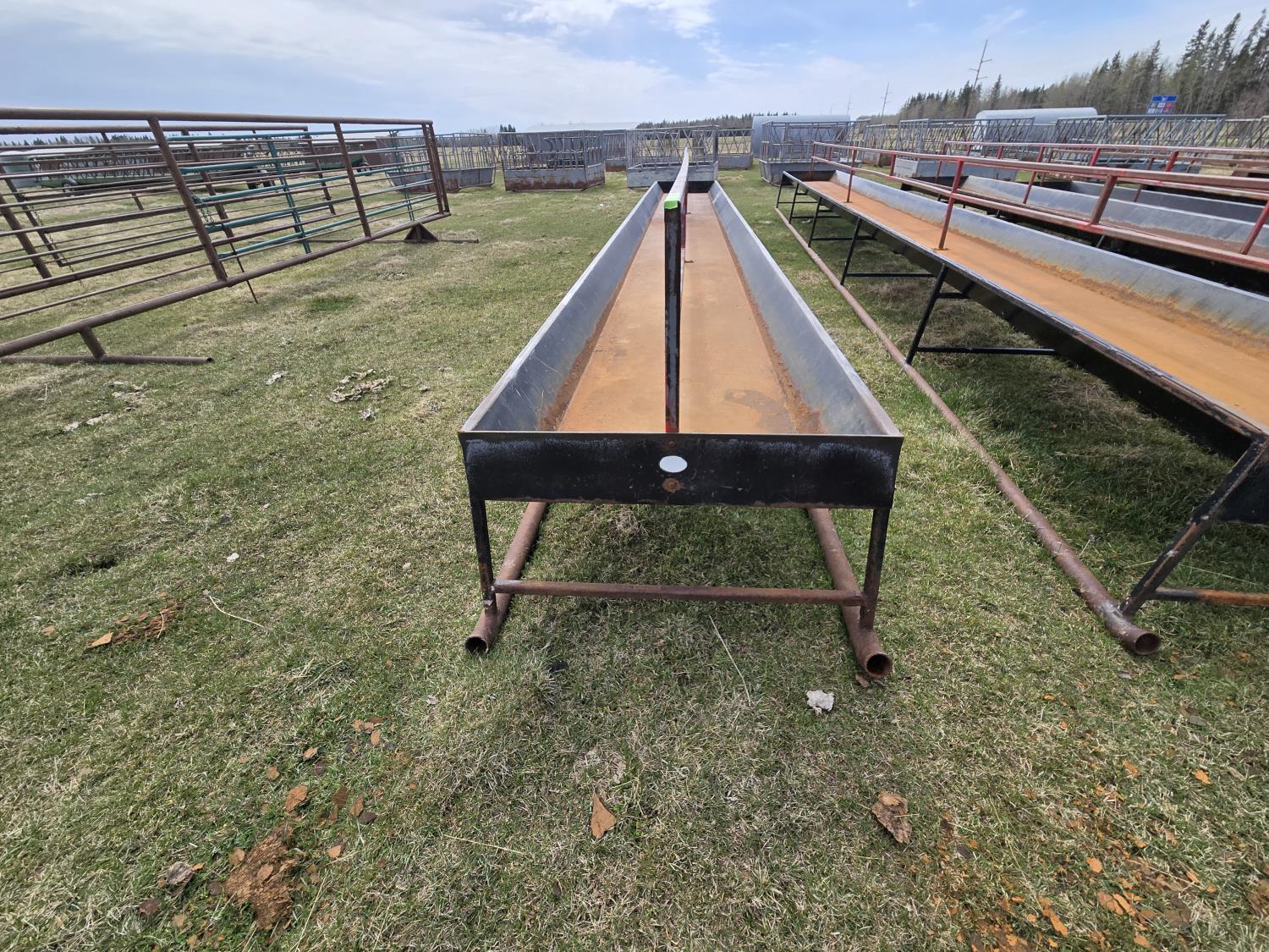 2-7/8 pipe skids, square tube frame, 40 inch wide metal feed bunk trough, center two rail barrier