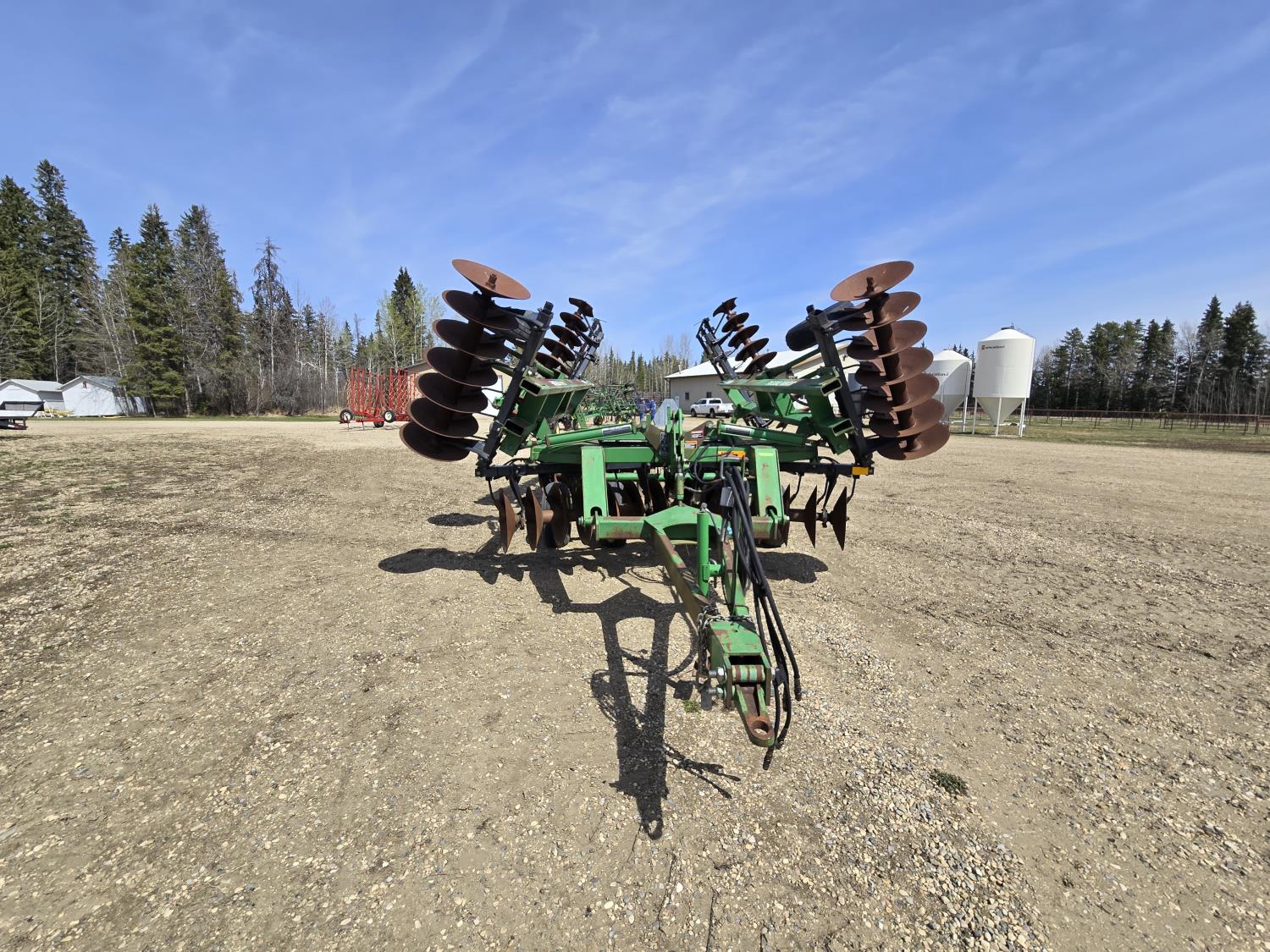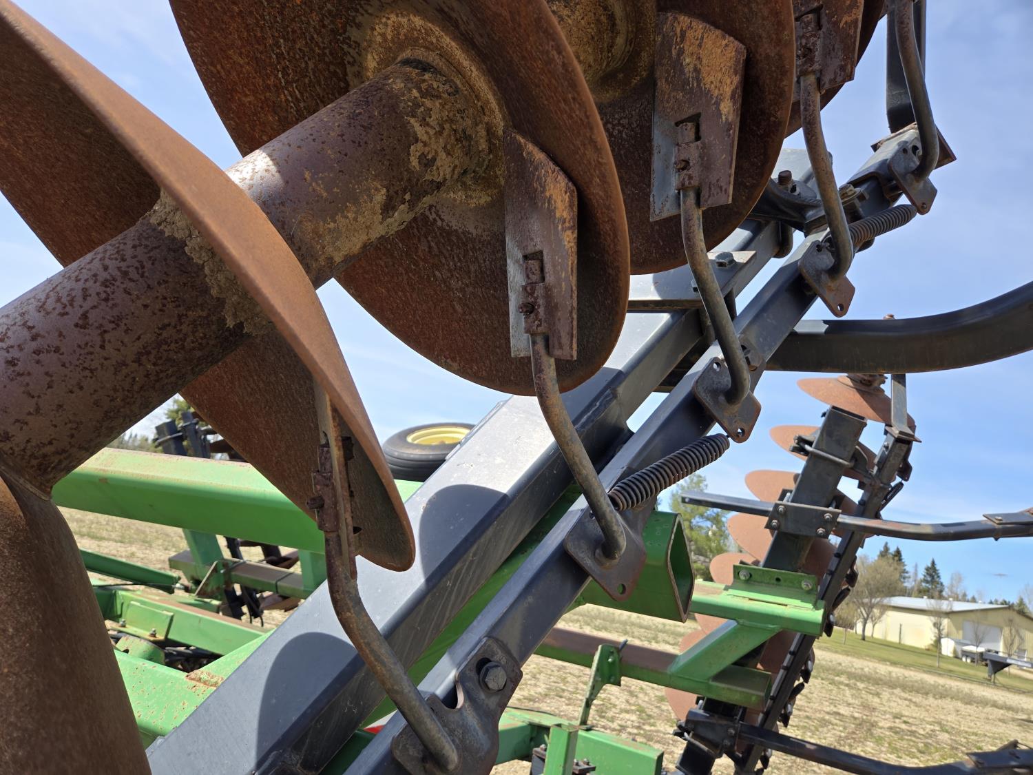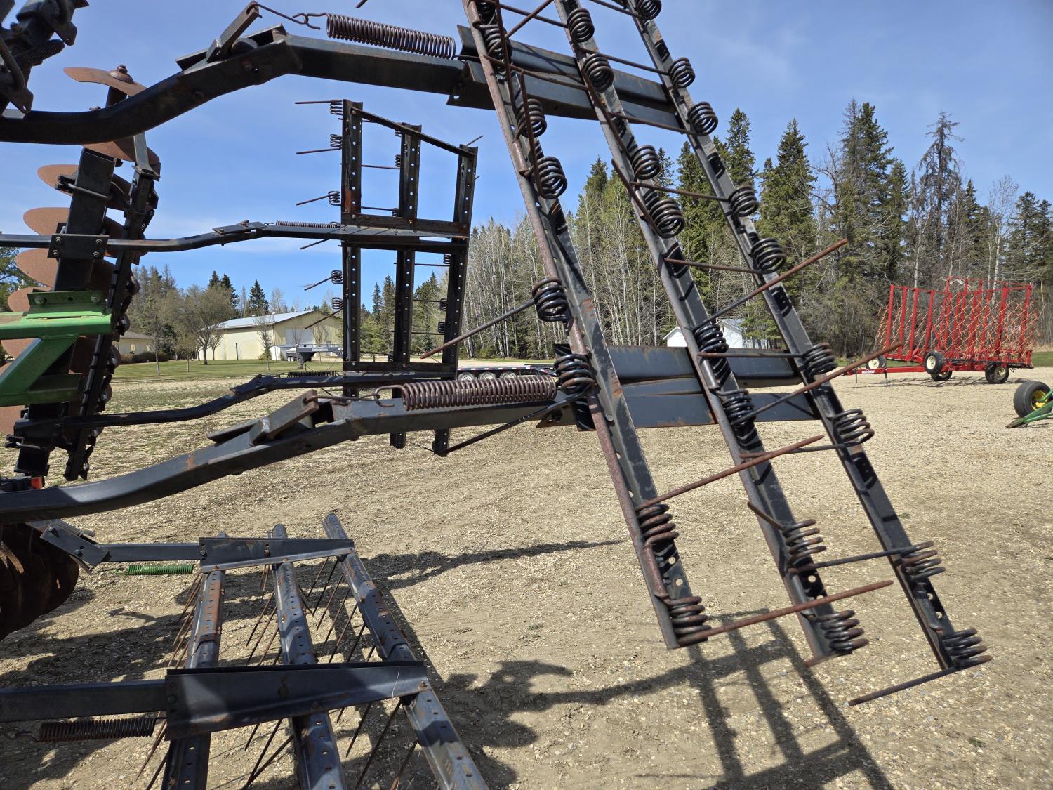 front: 9 inch spacing smooth deep cone 21 inch discs, rear: 9 inch spacing smooth deep cone 21.5 inch discs, duals main frame, mounted 3bar spring tooth harrows, adjustable hitch, light kit, adjustable rear stand, 9.5-14 tires