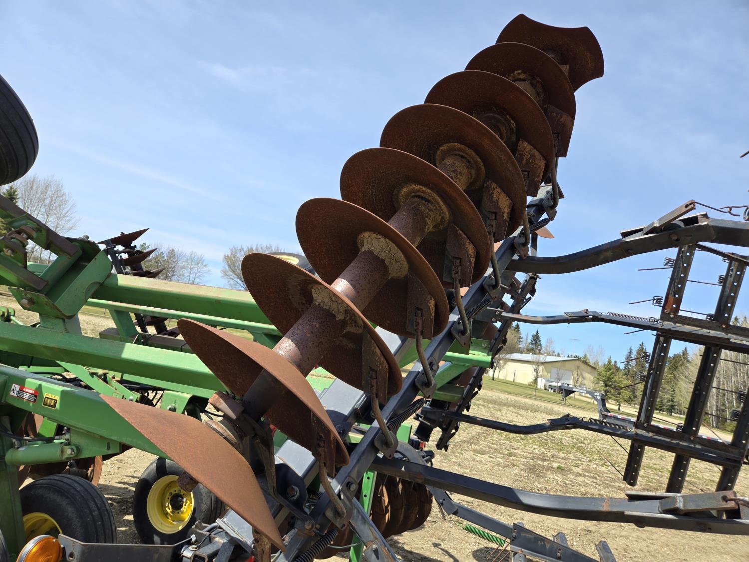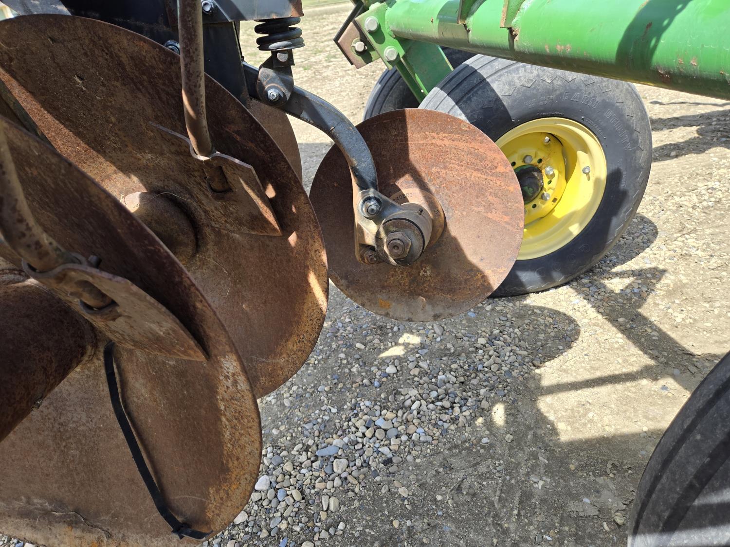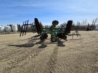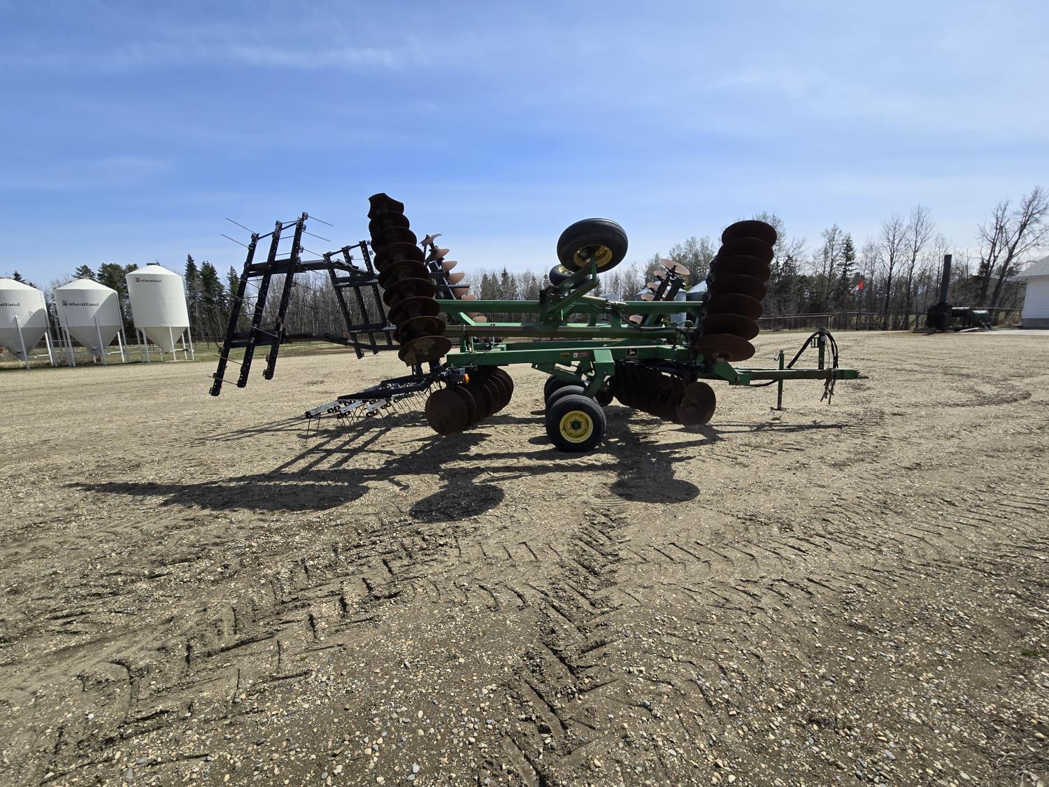 front: 9 inch spacing smooth deep cone 21 inch discs, rear: 9 inch spacing smooth deep cone 21.5 inch discs, duals main frame, mounted 3bar spring tooth harrows, adjustable hitch, light kit, adjustable rear stand, 9.5-14 tires