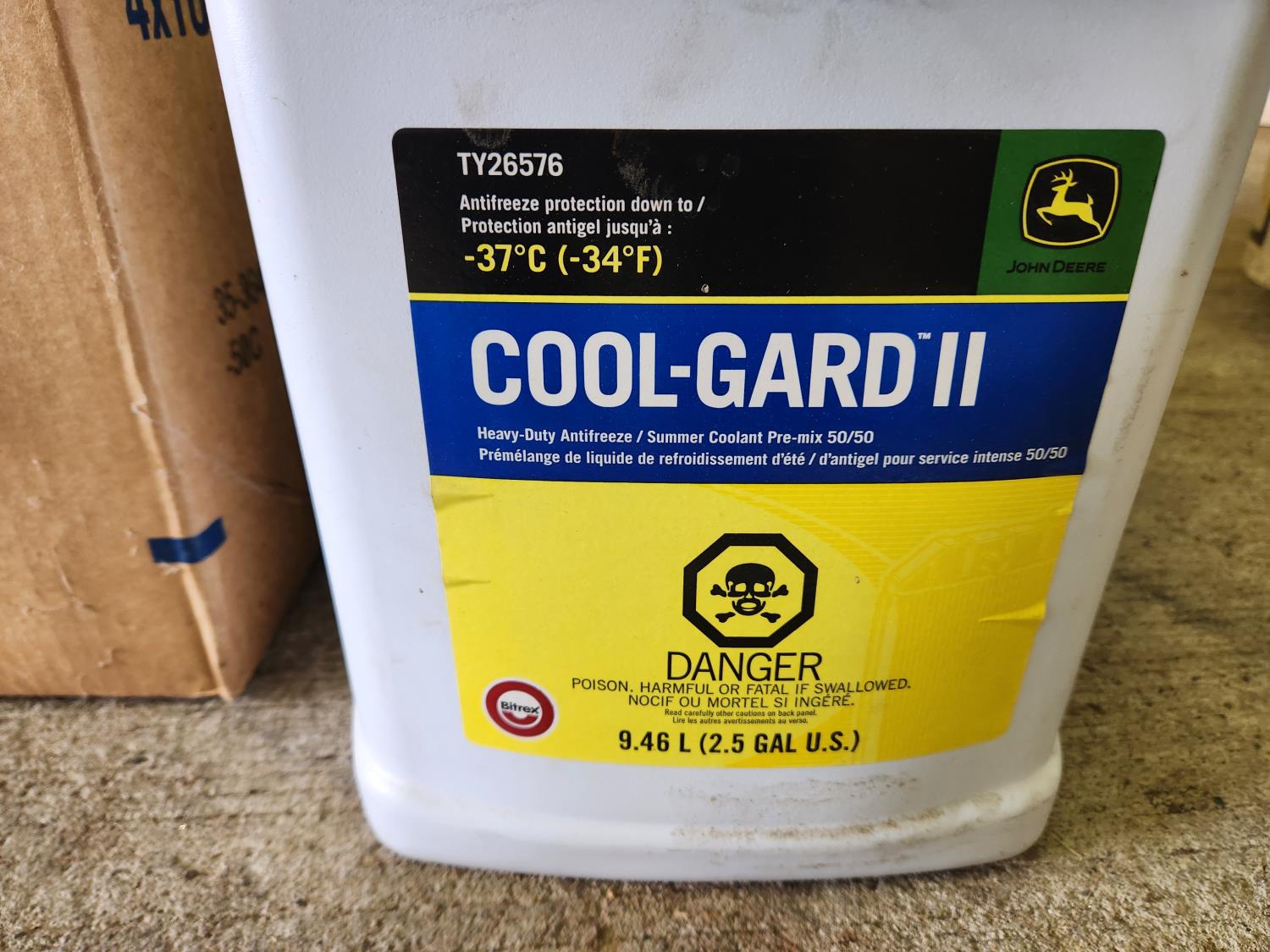 28 liters of John Deere cool guard antifreeze, 6 liters of all purpose cleaner, miscellaneous lubricants, silicon, anti-sieze