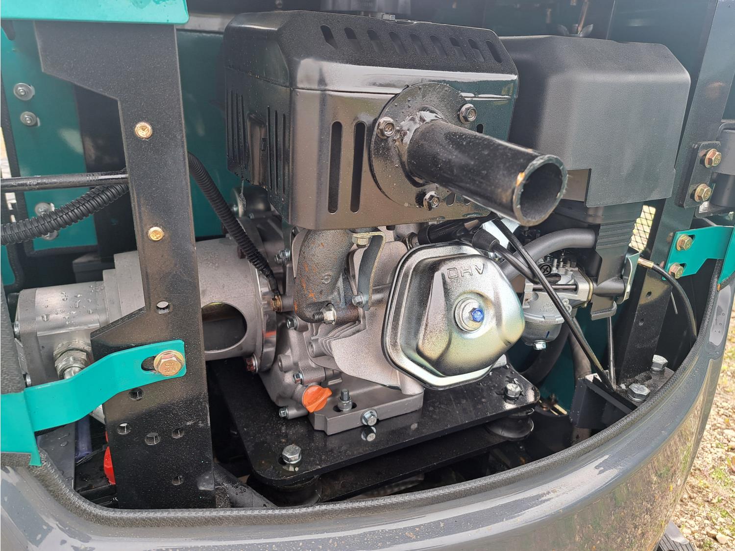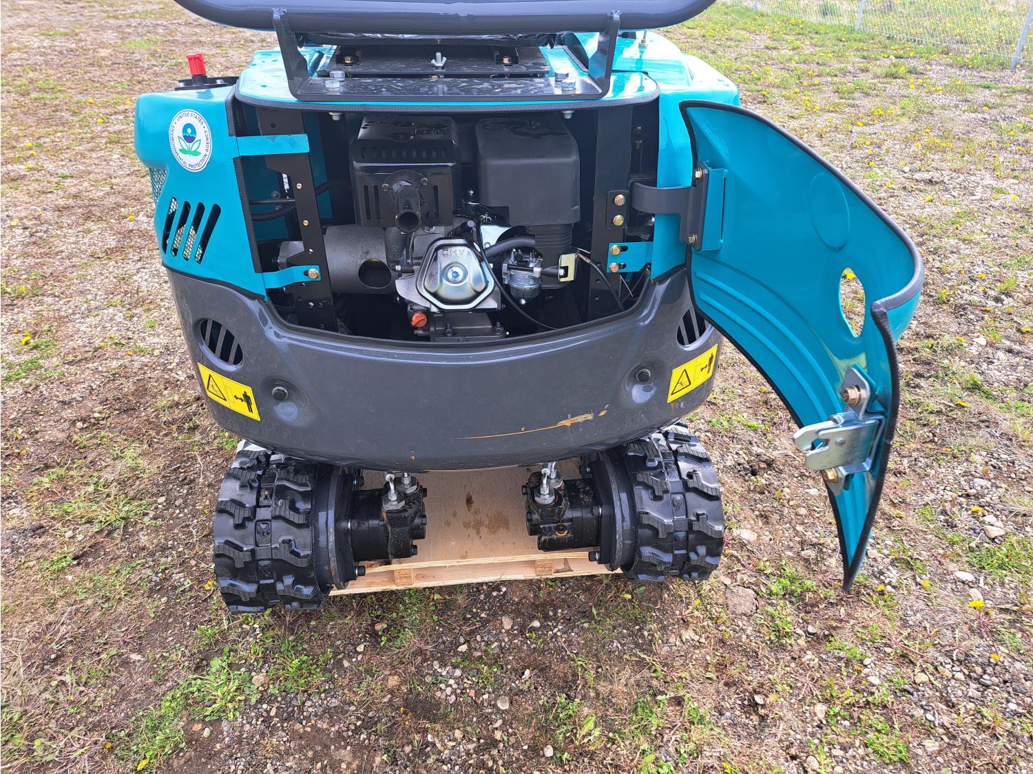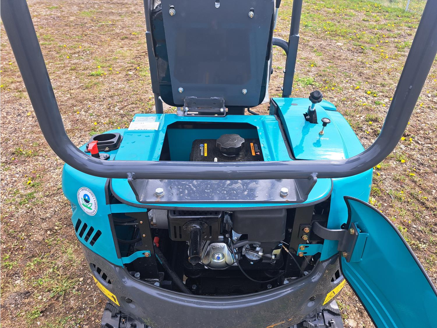 Open station, pilot controls, gas engine, 15 inch dig bucket, hydraulic Q/C coupler, hydraulic thumb, 1 auxiliary hydraulics, 2 Ft 8 inch stick, 7 inch track pads