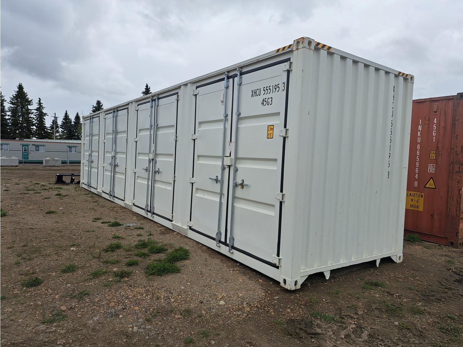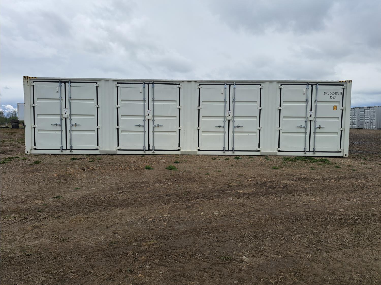 4 side doors, 1 end door, lock boxes, white color