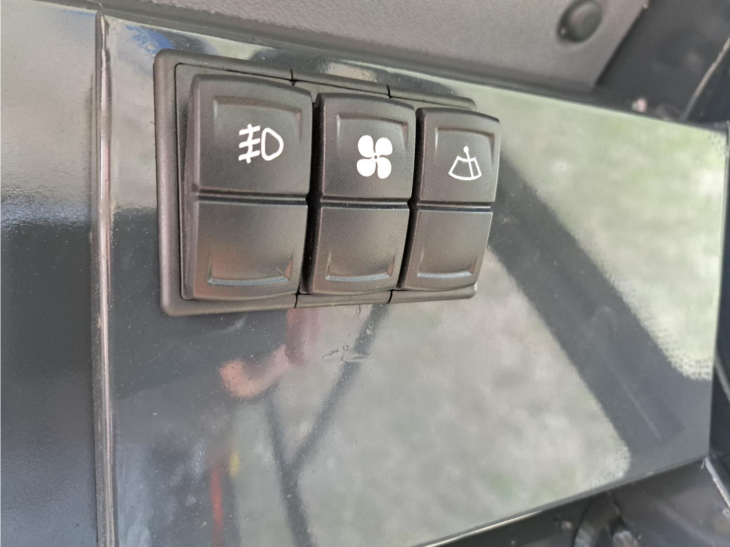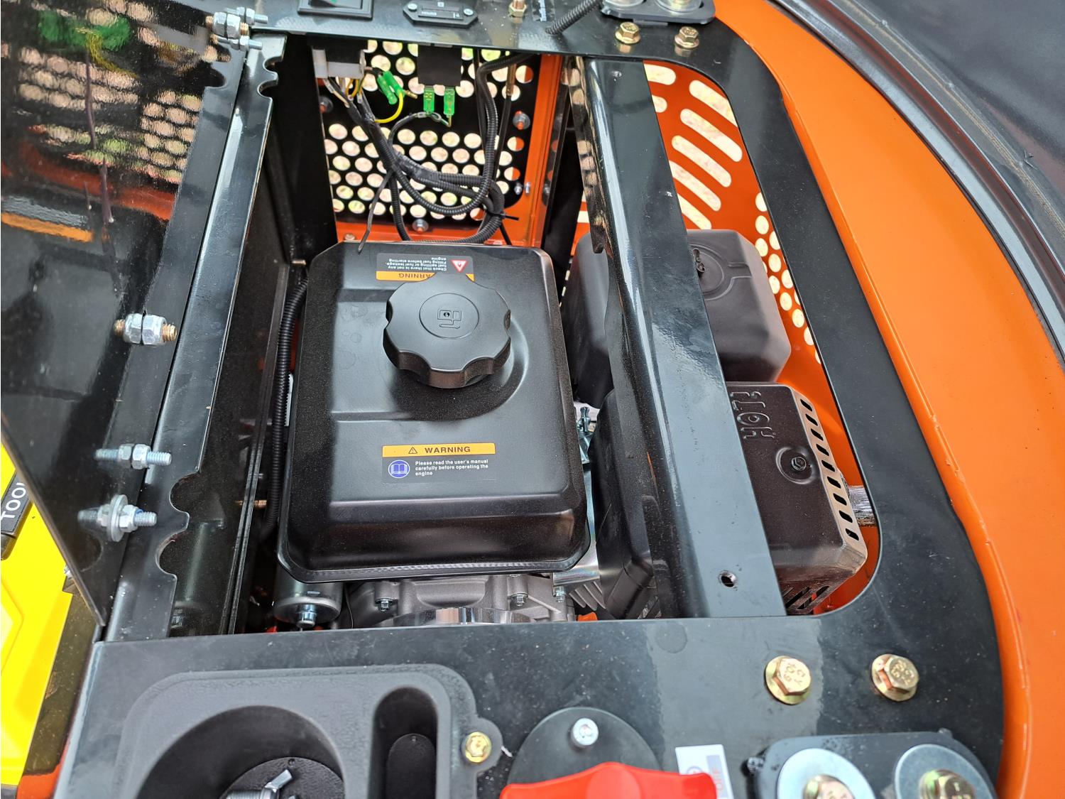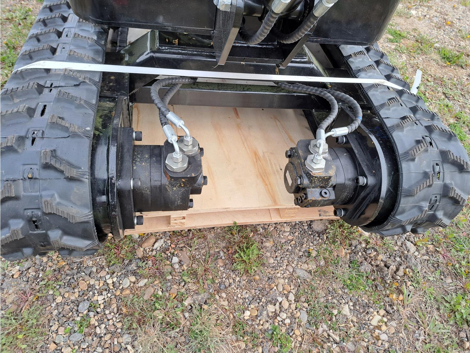 Enclosed cab, pilot controls, gas engine, bucket, manual thumb