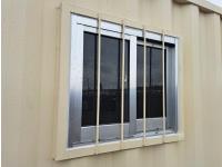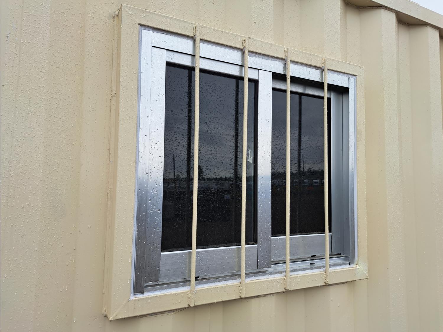 single walk door, window, fork pockets