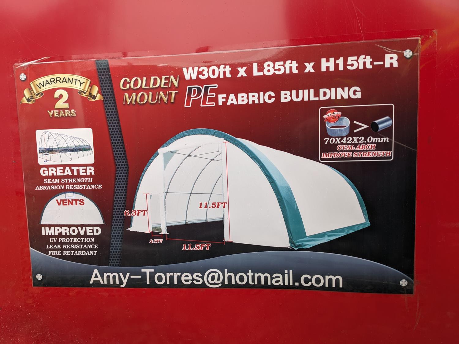 3044 2024 Golden Mountain 308515R 30 Ft X 85 Ft X 15 Ft Dome Storage Shelter (Unused)