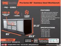 3023 TMG Industrial WB85S Pro Series 85 Inch Stainless Steel Workbench (Unused)