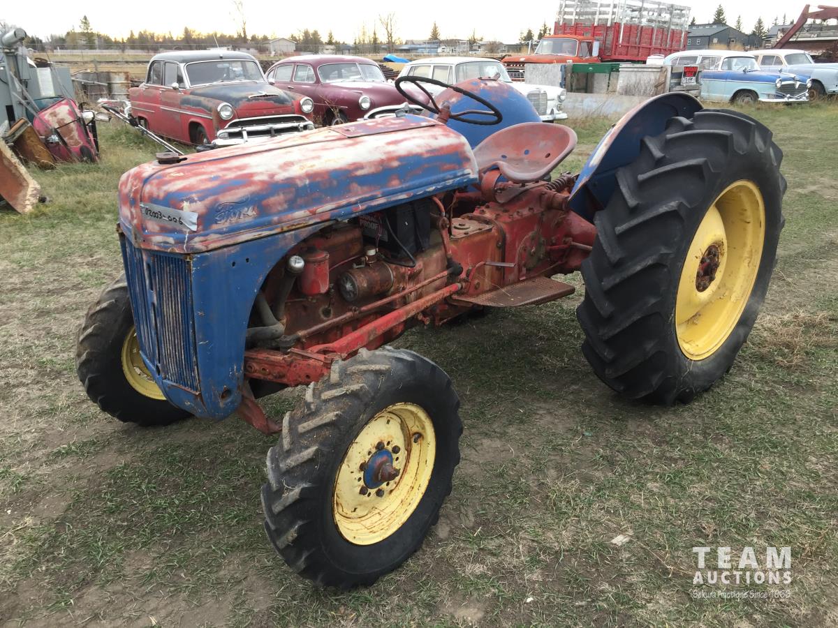 Ford 2.0 L 4 cylinder 21 HP, gas engine, 18 PTO HP, 4 speed manual transmission, is now a 12 volt, open station platform, 540 PTO, 3 point hitch, 6.70-15 front tires, 13.6-28 rear tires