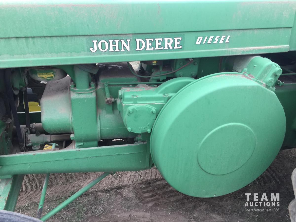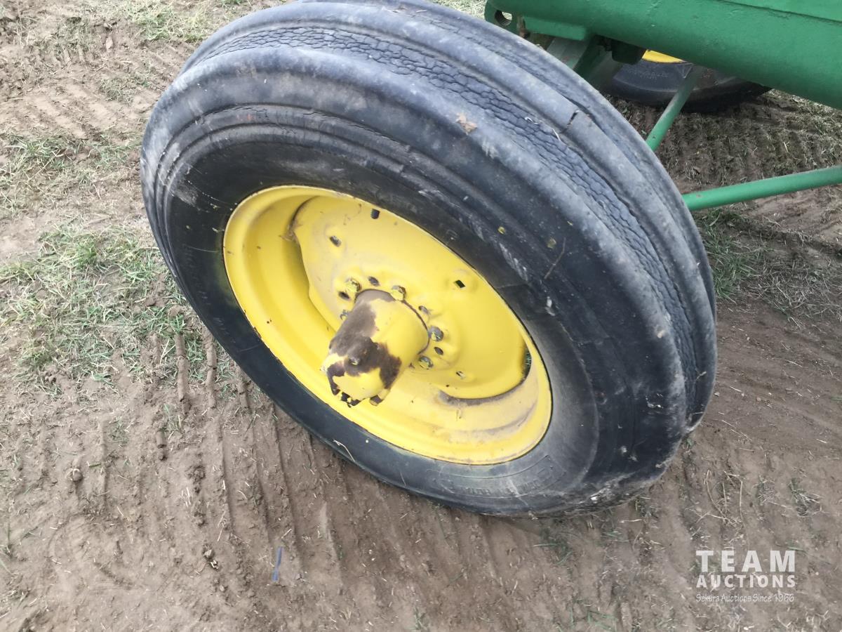 John Deere 6.8 L 2 cylinder 48.58 HP, diesel engine, 43.15 PTO HP, 5 speed manual transmission, open station platform, 540 PTO, 7.50-18SL front tires, 23.1-28 rear tires
