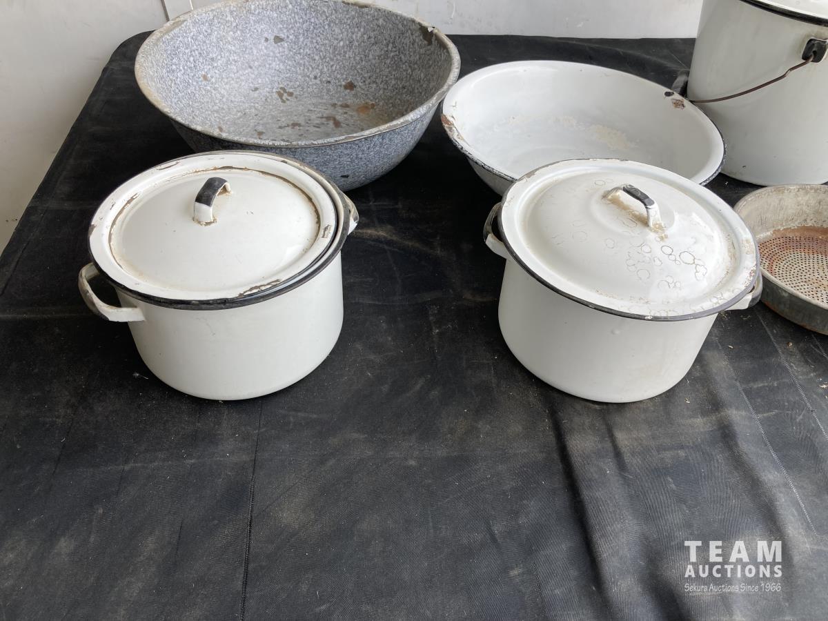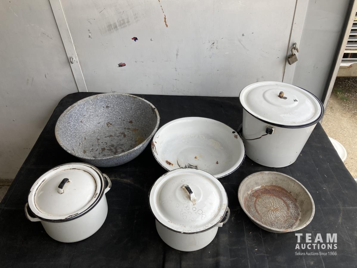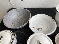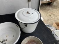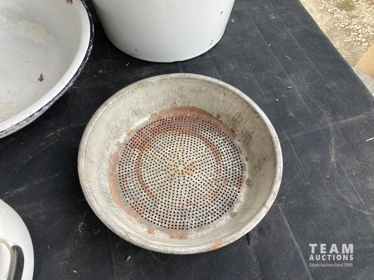 1846 (2) Pots, (2) Bowls, Metal Bucket & Sieve