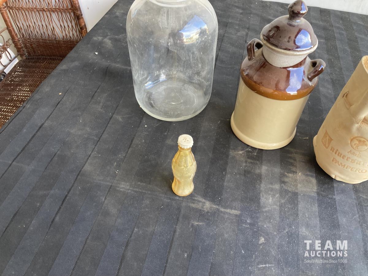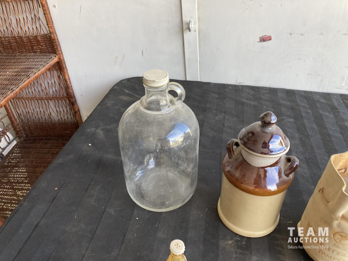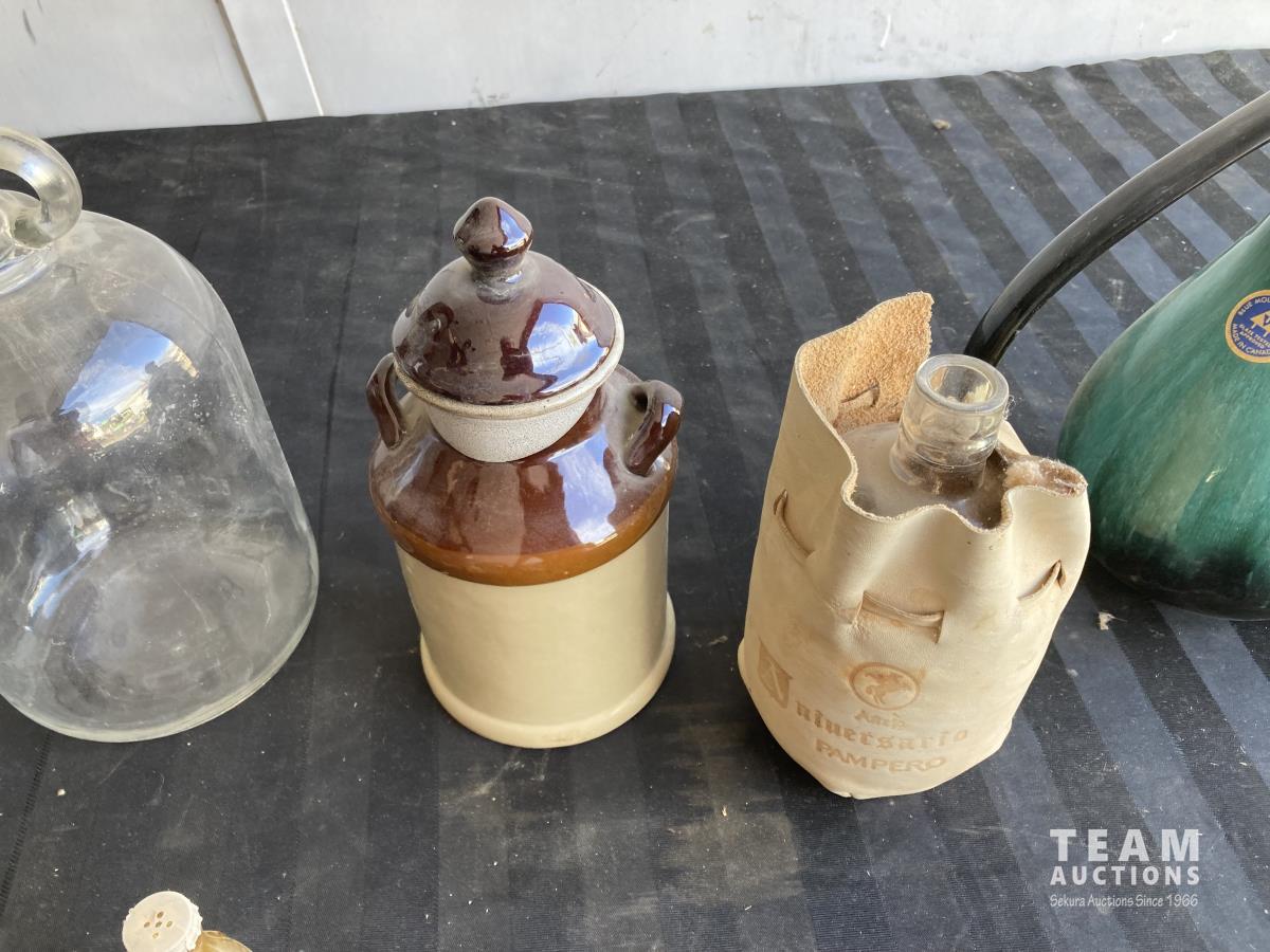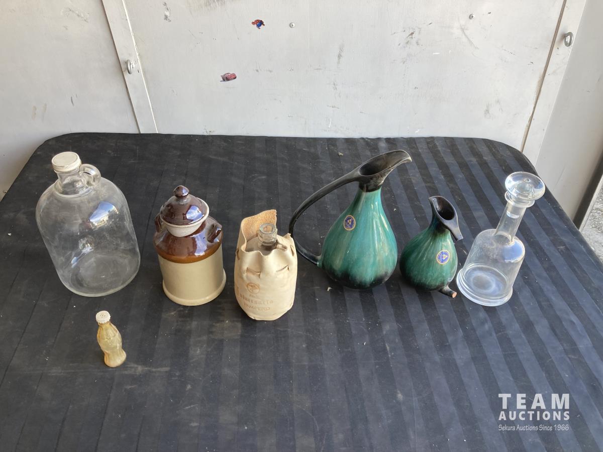 1156 (3) Glass Bottles, (2) Jugs & Ceramic Jug