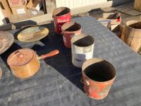 1884 (4) Cans, (3) Plates & Pot