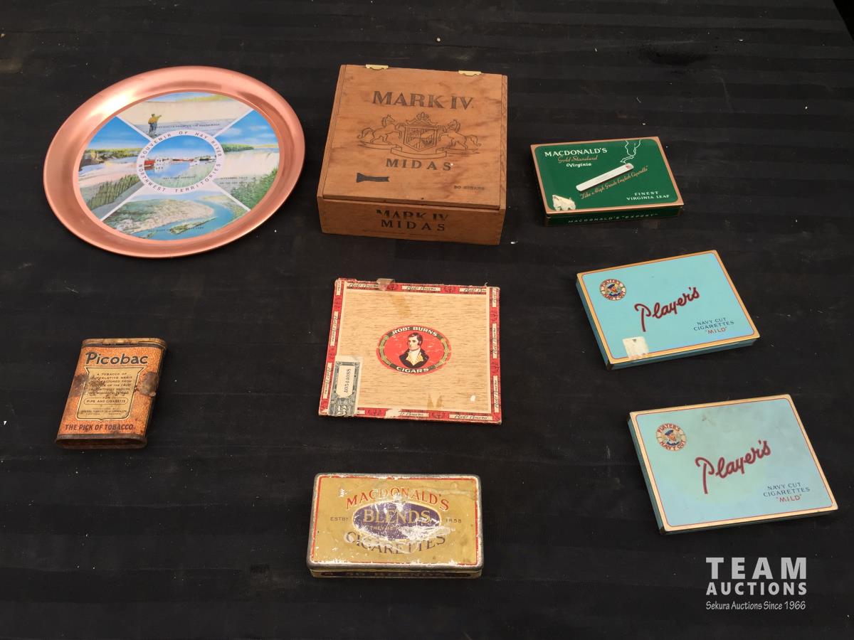 1807 (4) Cigarettes Boxes, (2) Cigar Boxes, Tobacco Tin & Plate