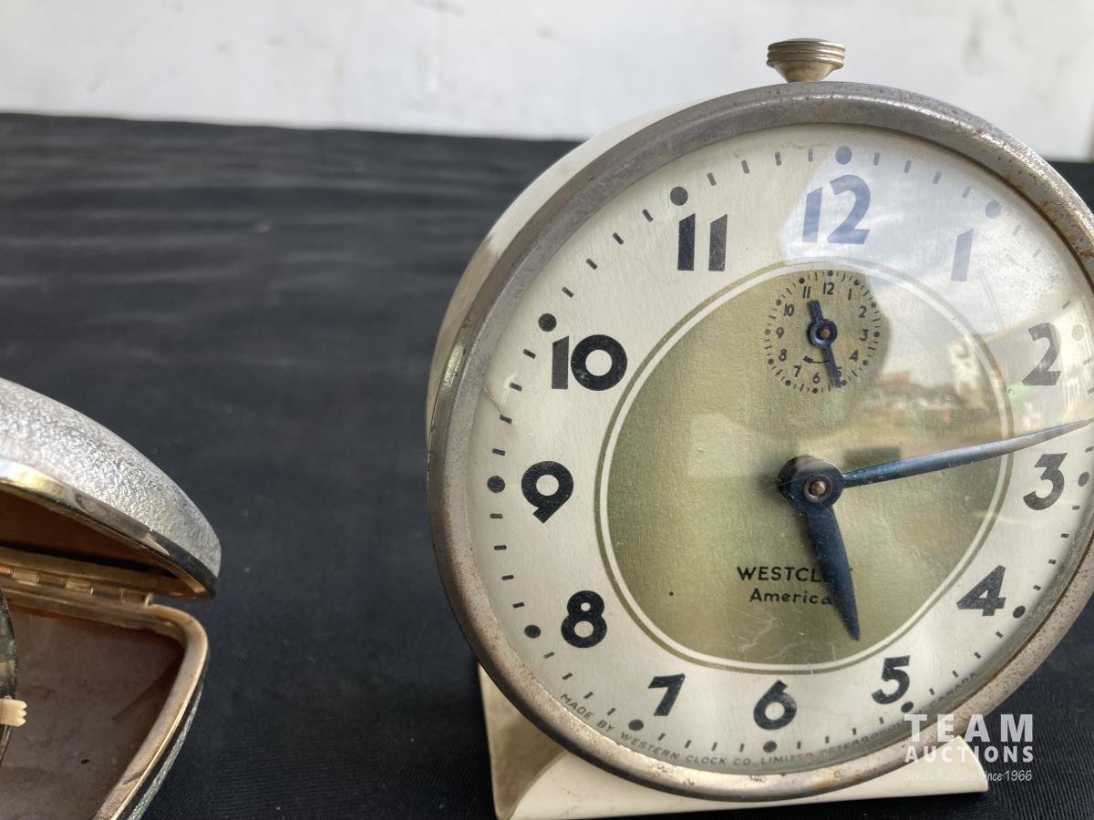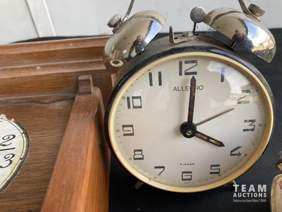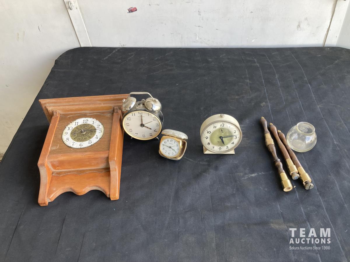 1911 (4) Clocks, (4) Stamps & Glass Jar