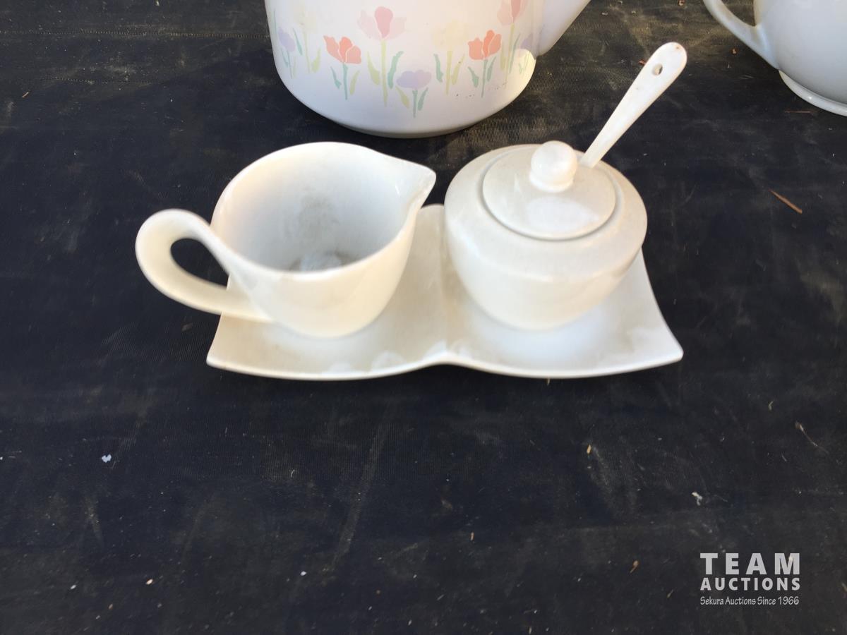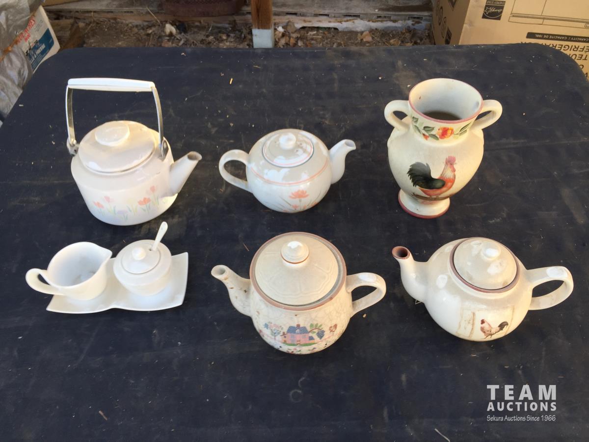 2051 (4) Teapots, Creamer & Sugar Set & Vase