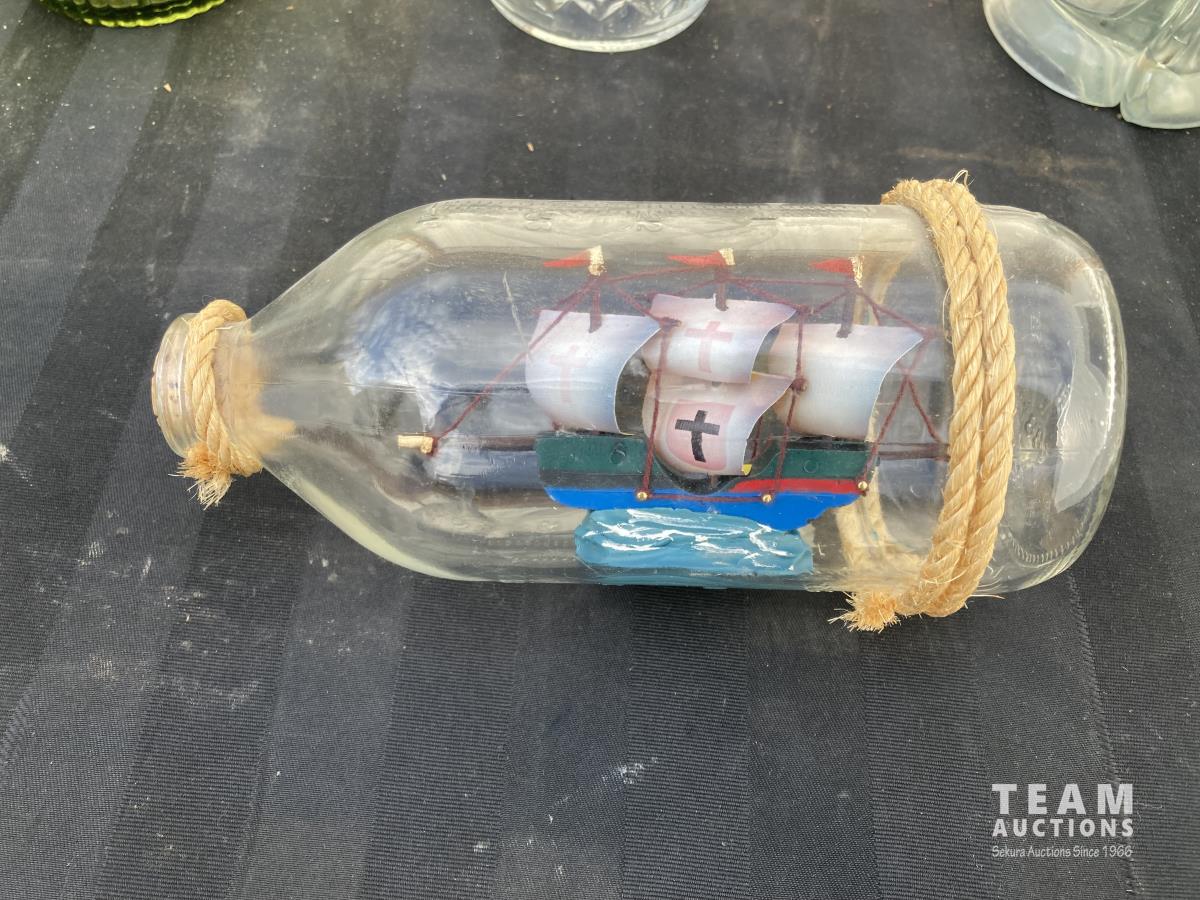 1935 (5) Glass Bottles, Ship in a Bottle & Glass Bowl