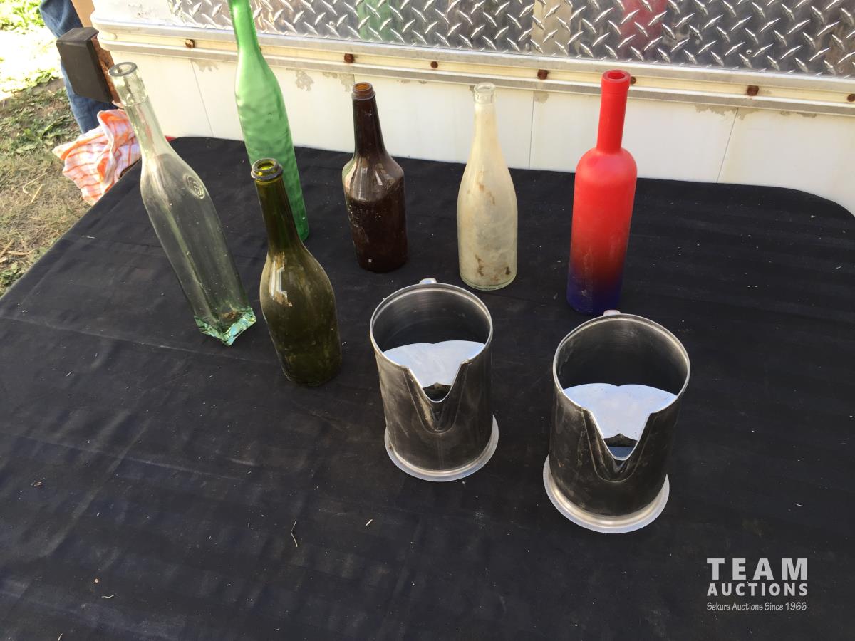 1822 (6) Glass Bottles & (2) Water Pitcher