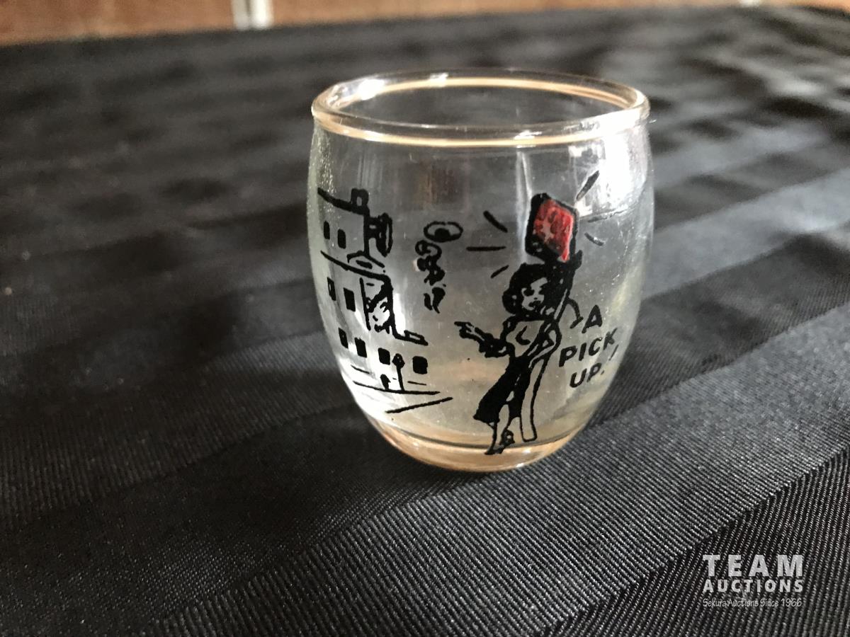 1664 (7) Glass Bottles W/ (4) Shot Glasses w/ Plates