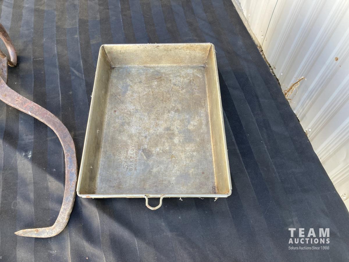 2526 Butchering Paper Hanger, Meat Hooks & Metal Tray