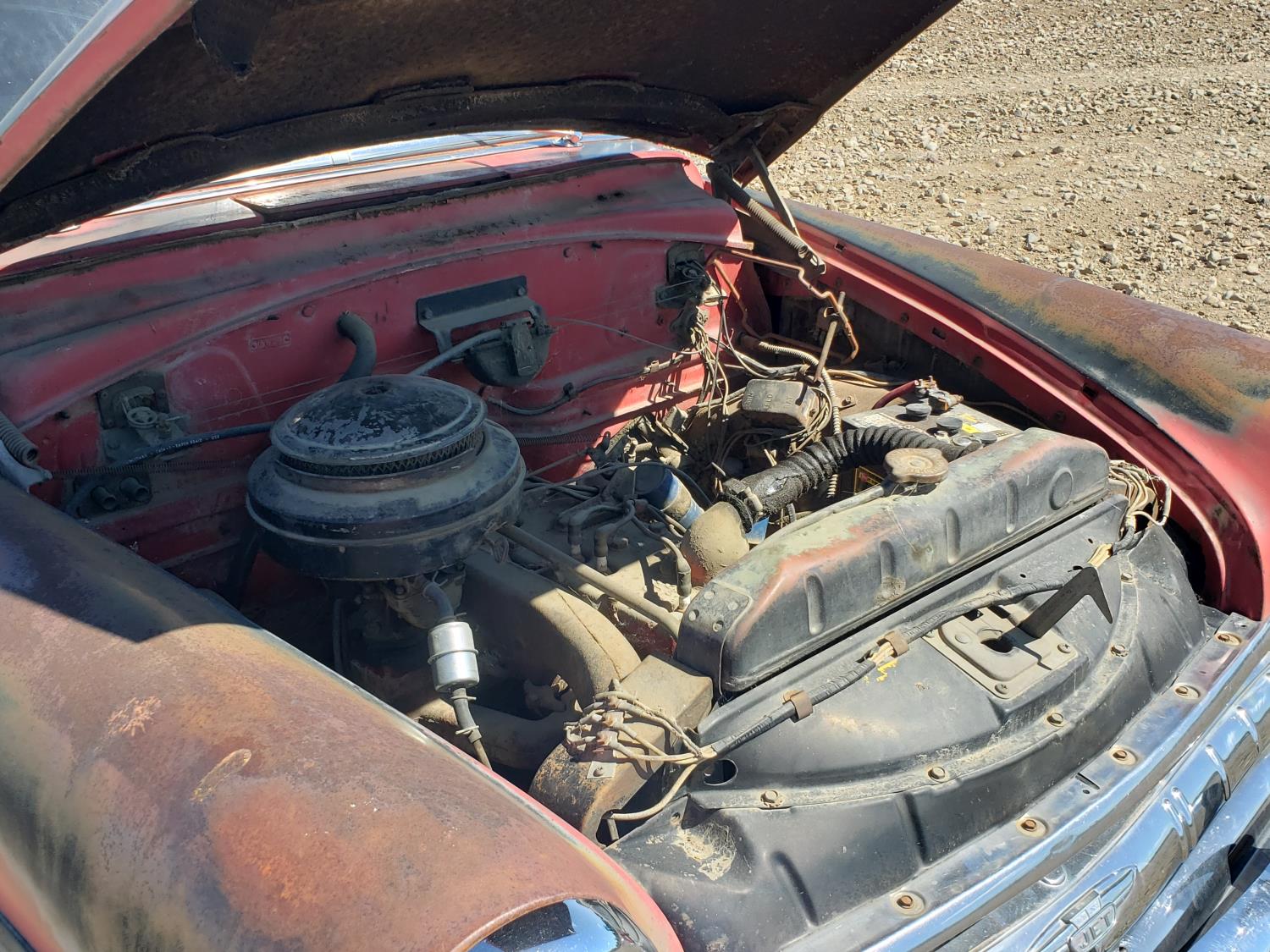 6 cylinder, gas, 3 speed manual transmission, 7.75-15 tires
