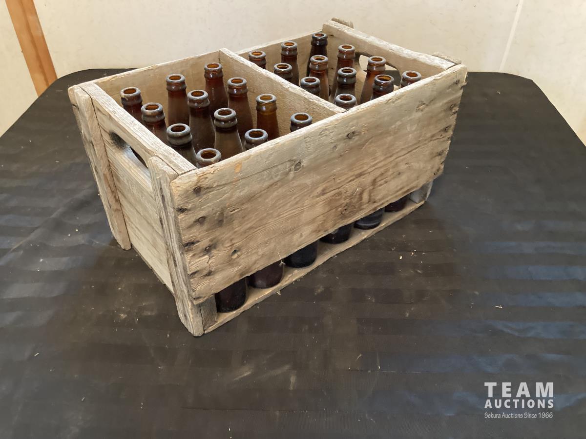1224 Wooden Box w/ Glass Bottles