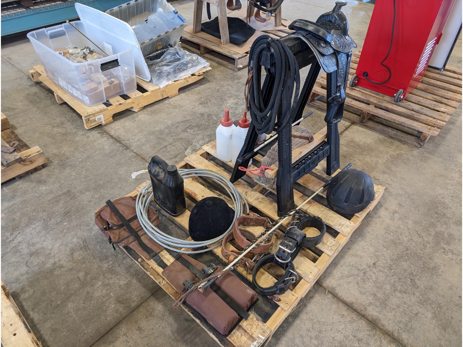 150 (3) Riding Helmets, Kid's 8 Inch Saddle, Stand, & Misc Horse Items