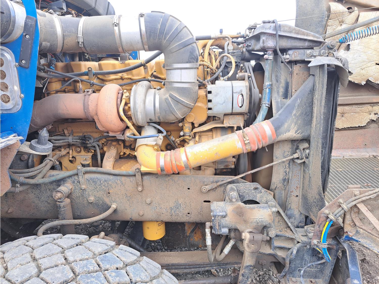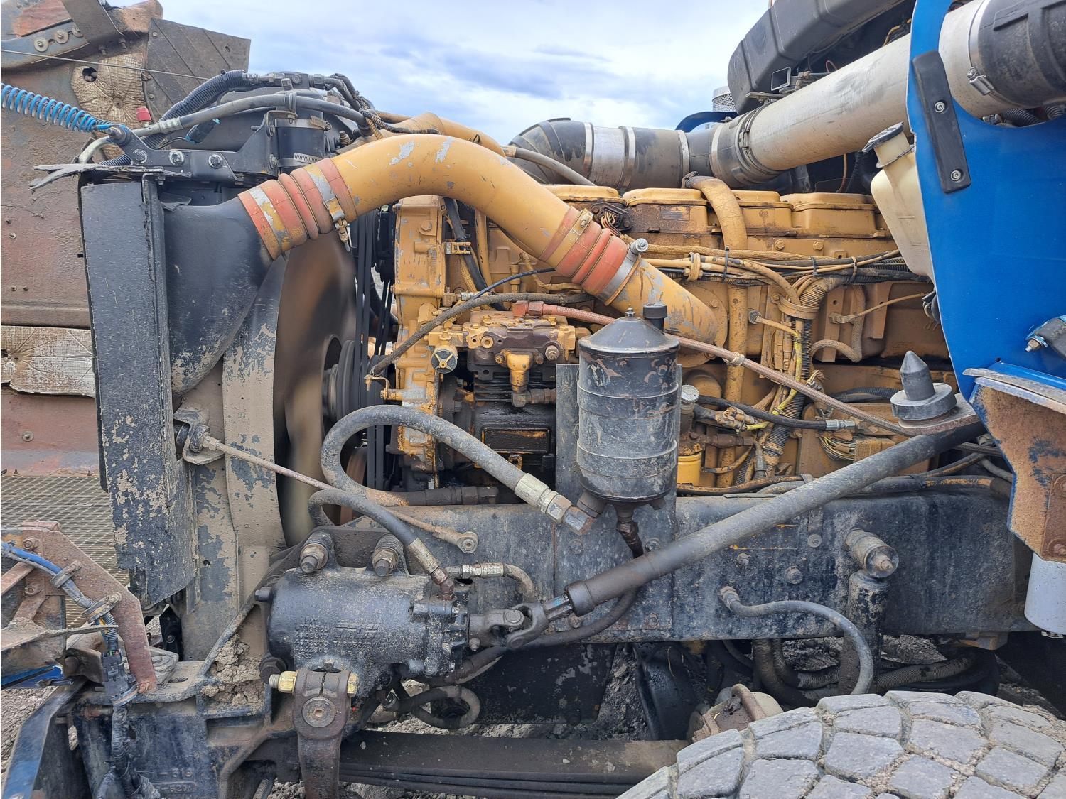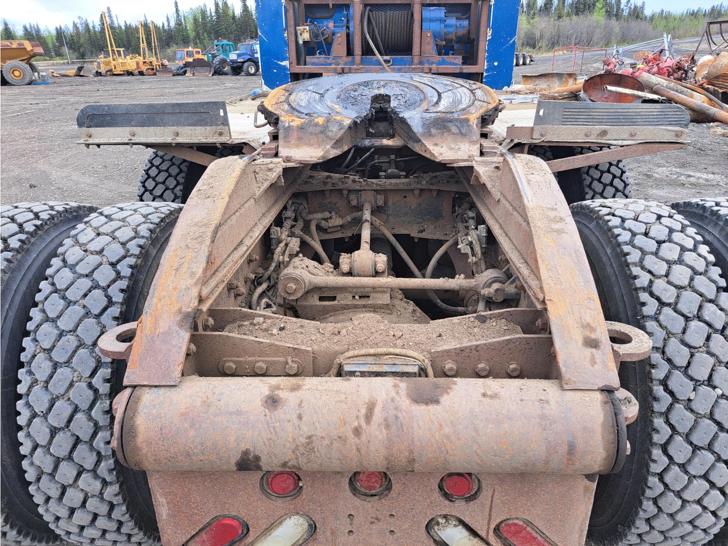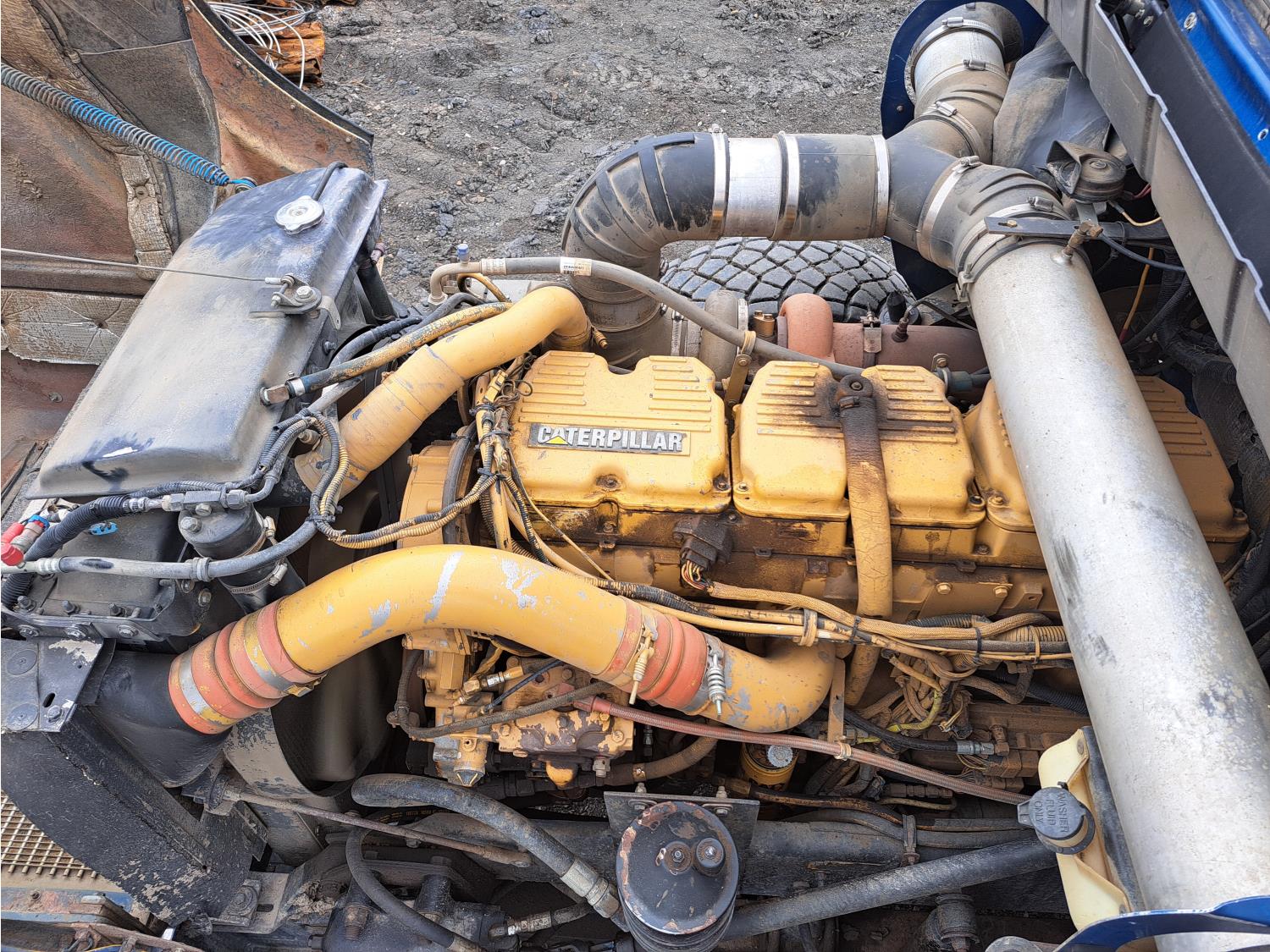 Caterpillar 3406 SINGLE TURBO 14.6 L 475 HP diesel engine, engine heater, engine brake, Eaton FULLER 18 speed manual transmission, 20 inch sleeper, A/C, cruise control, 2-way radio, stereo, aluminum headache rack, tool boxes, beacons, hydraulic winch, New Way air ride suspension, 20,000 lb front axle, 46,000 lb rear axles, diff lock, 266 inch WB, dual steer boxes, 3-way lockers, rear live roll, rear tow hitch plate, 385/65R22 front tires, 11R24.5 rear tires