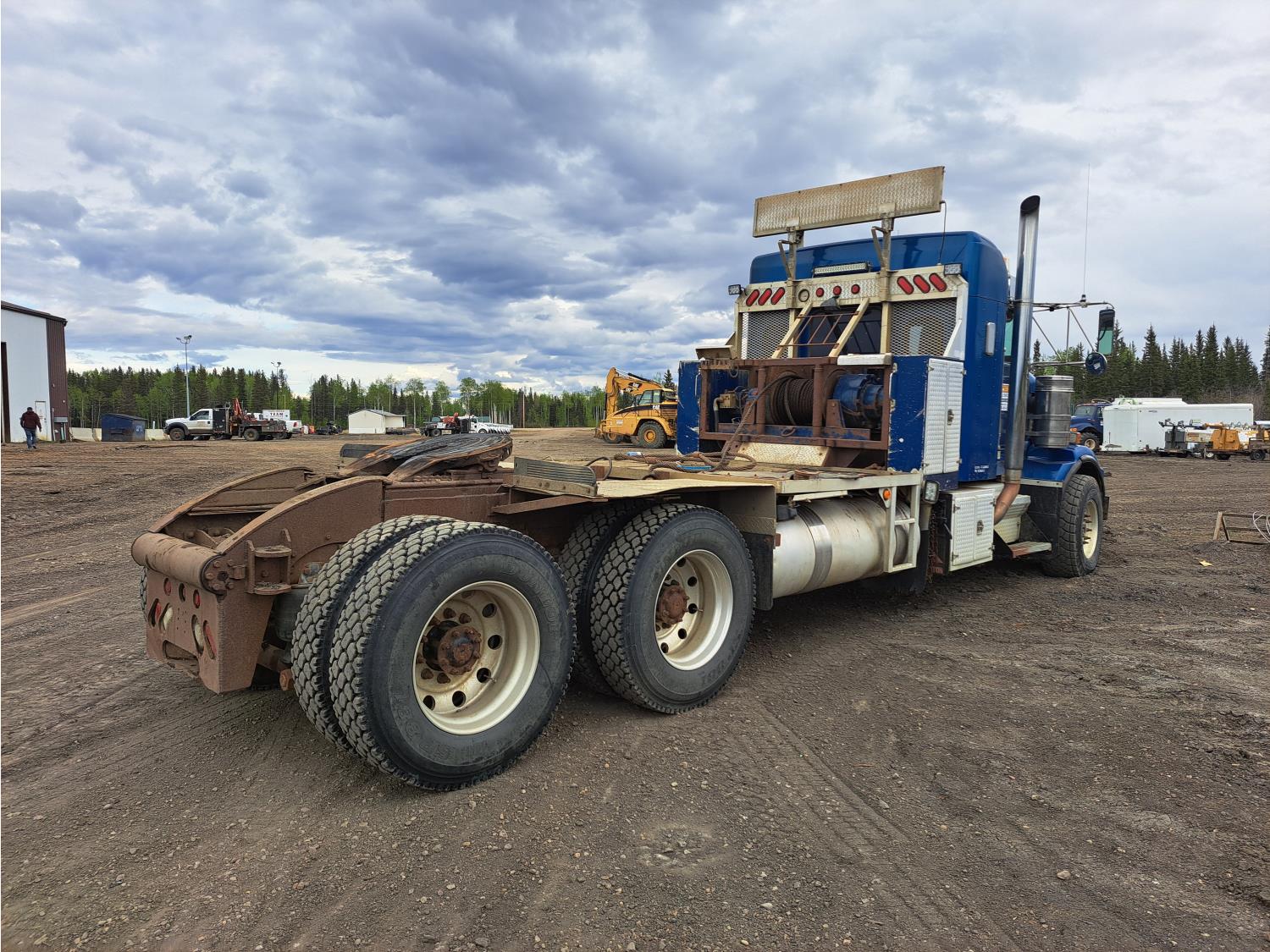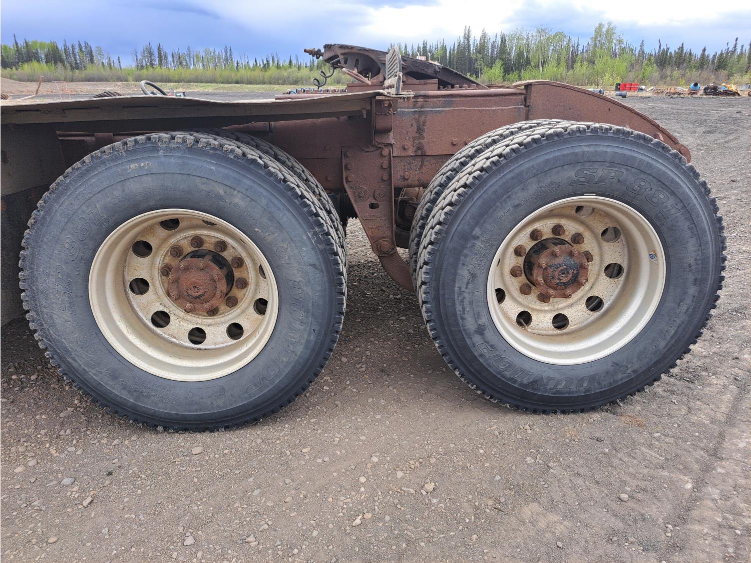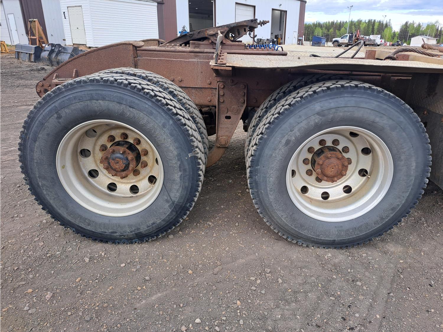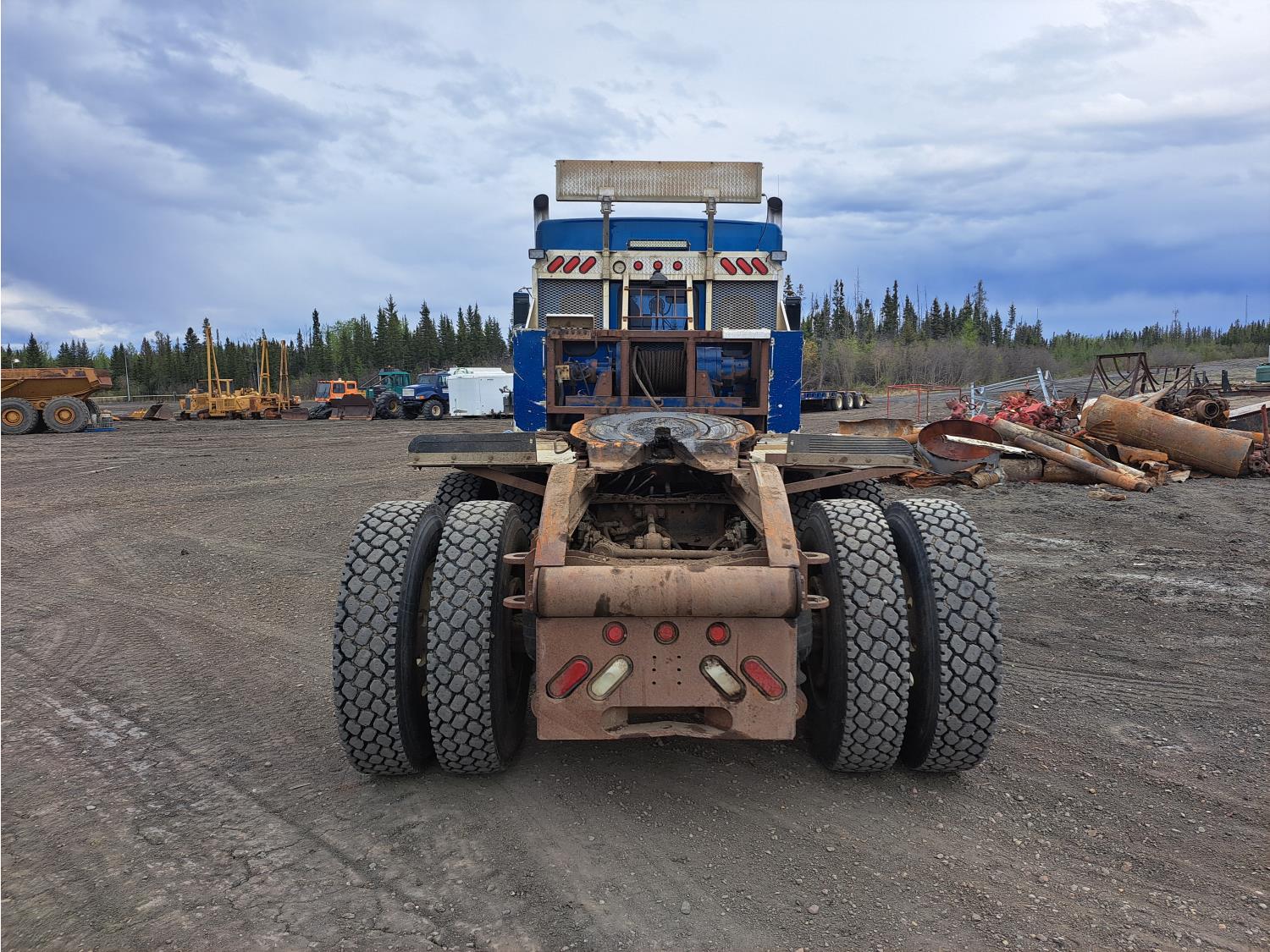 Caterpillar 3406 SINGLE TURBO 14.6 L 475 HP diesel engine, engine heater, engine brake, Eaton FULLER 18 speed manual transmission, 20 inch sleeper, A/C, cruise control, 2-way radio, stereo, aluminum headache rack, tool boxes, beacons, hydraulic winch, New Way air ride suspension, 20,000 lb front axle, 46,000 lb rear axles, diff lock, 266 inch WB, dual steer boxes, 3-way lockers, rear live roll, rear tow hitch plate, 385/65R22 front tires, 11R24.5 rear tires