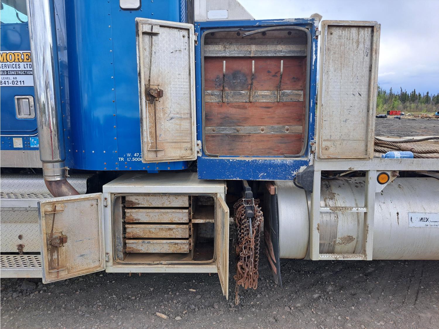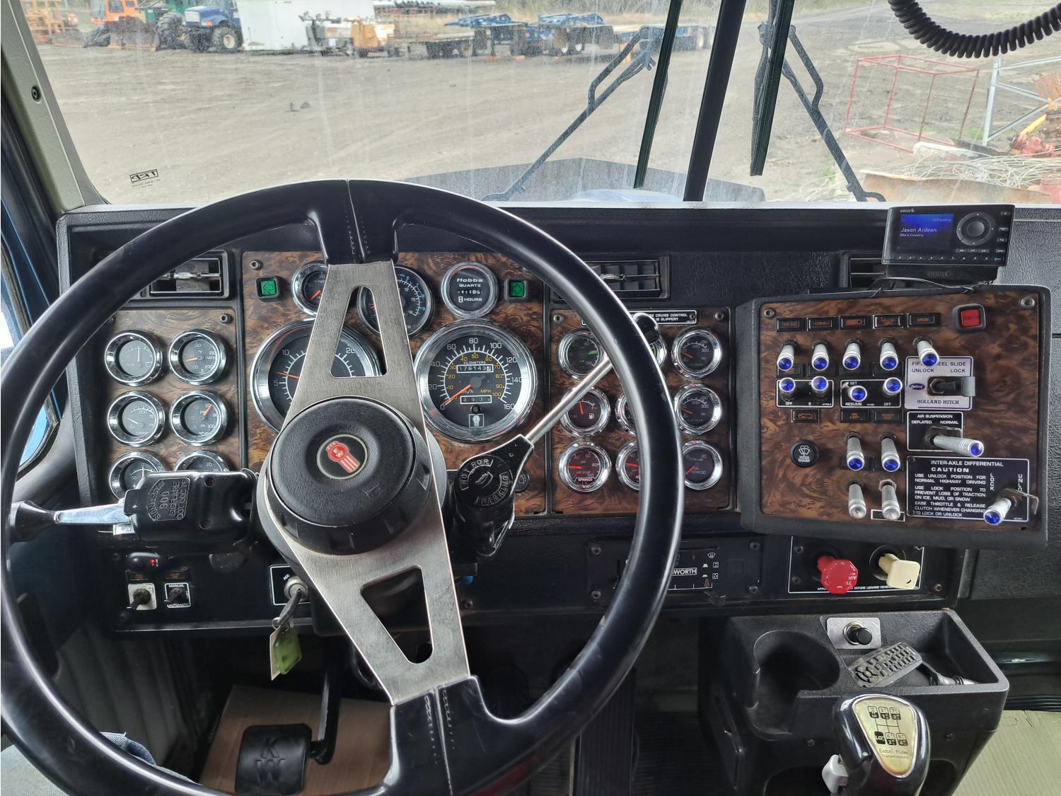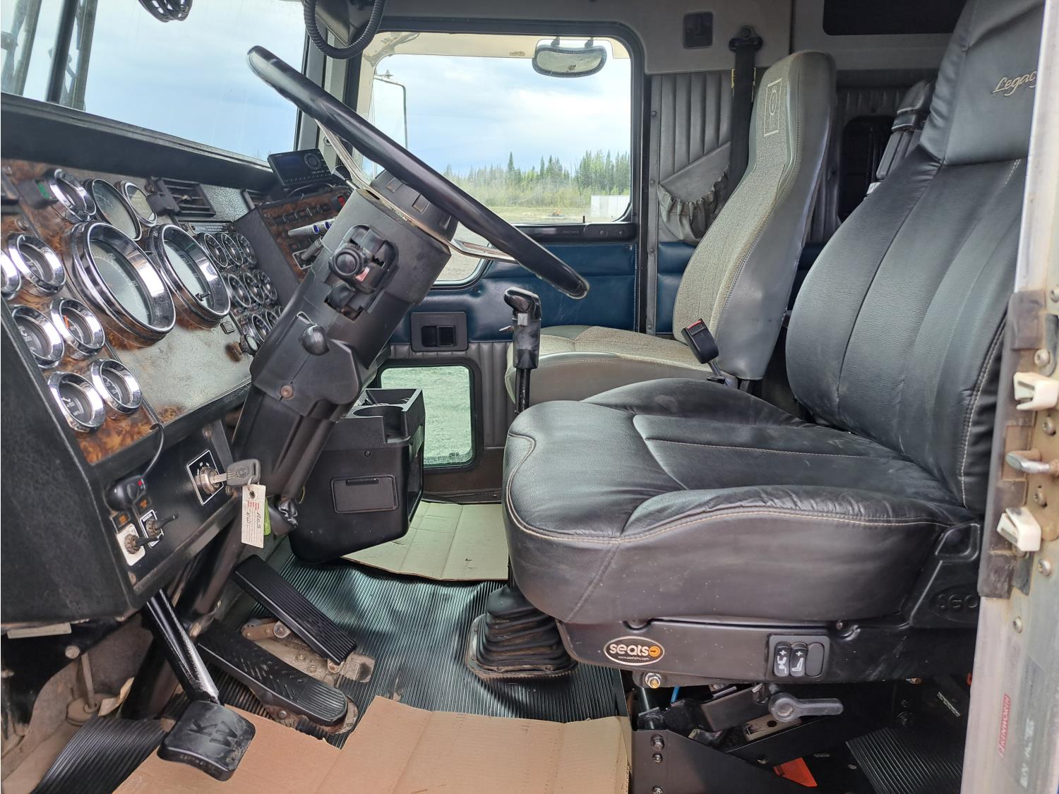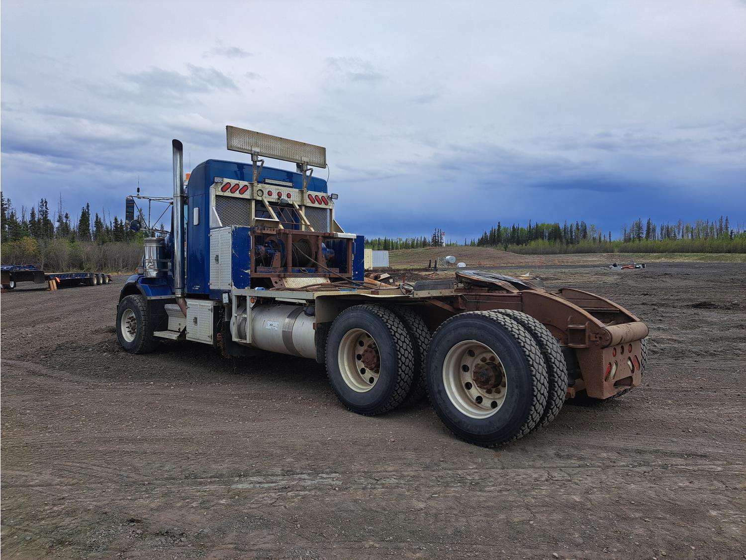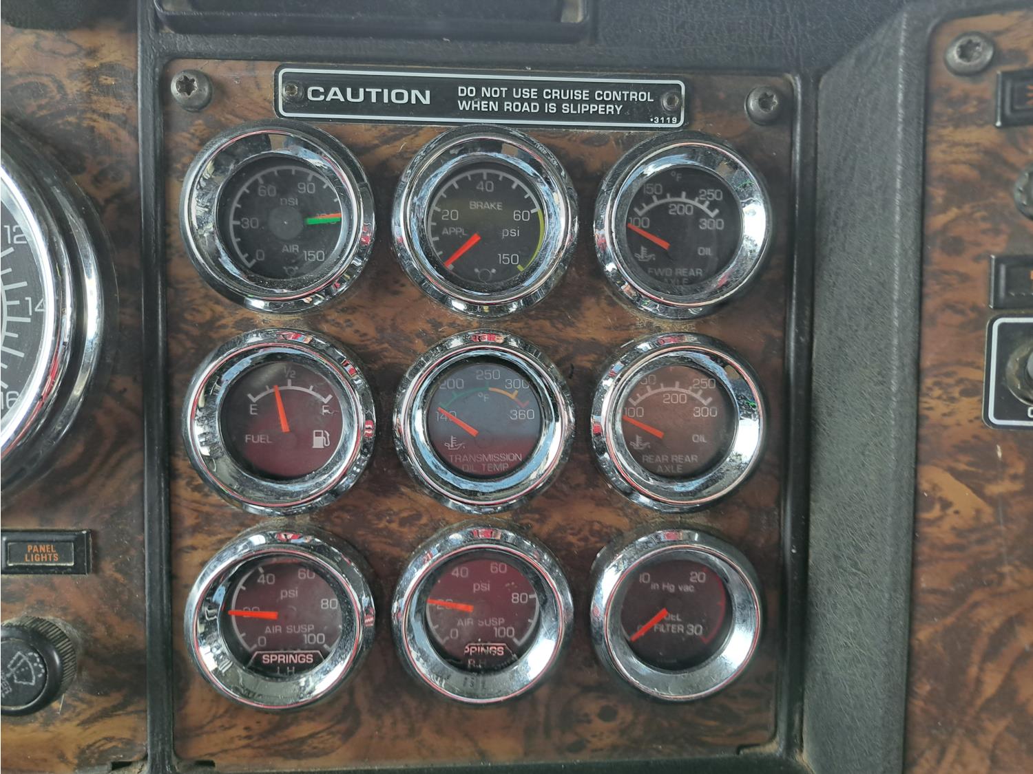 Caterpillar 3406 SINGLE TURBO 14.6 L 475 HP diesel engine, engine heater, engine brake, Eaton FULLER 18 speed manual transmission, 20 inch sleeper, A/C, cruise control, 2-way radio, stereo, aluminum headache rack, tool boxes, beacons, hydraulic winch, New Way air ride suspension, 20,000 lb front axle, 46,000 lb rear axles, diff lock, 266 inch WB, dual steer boxes, 3-way lockers, rear live roll, rear tow hitch plate, 385/65R22 front tires, 11R24.5 rear tires
