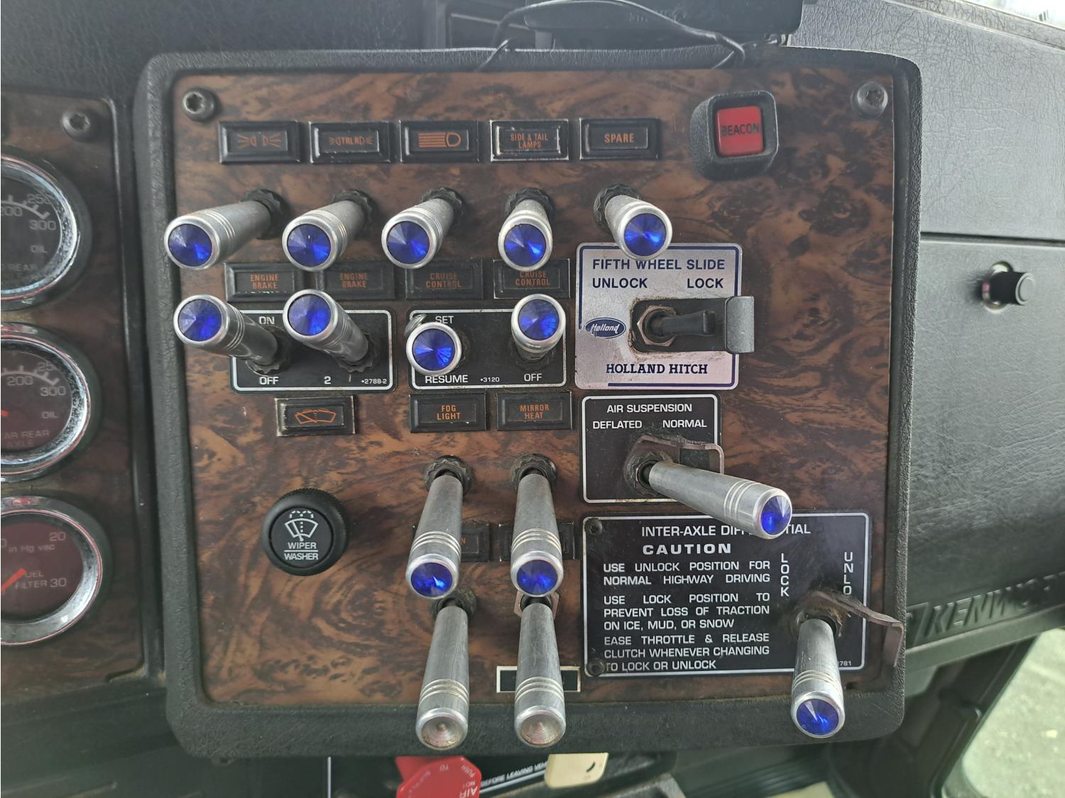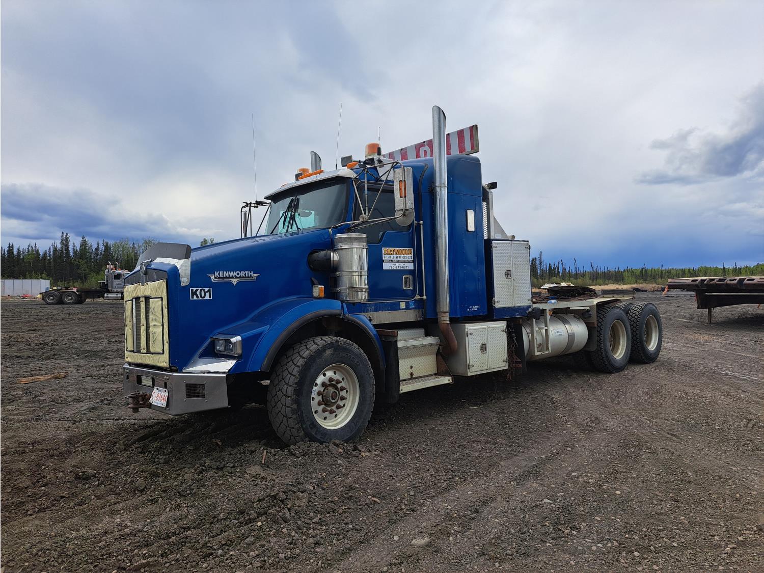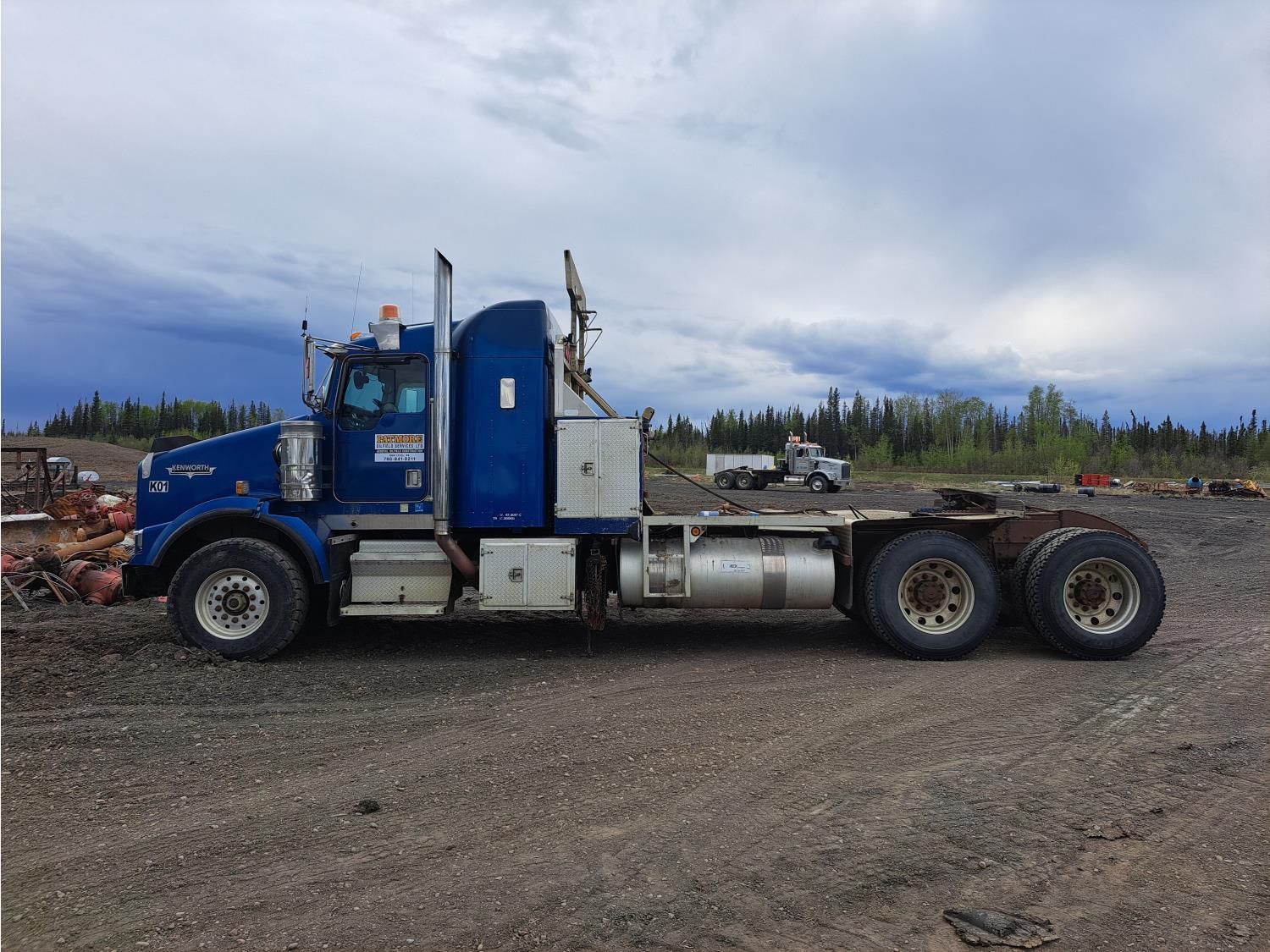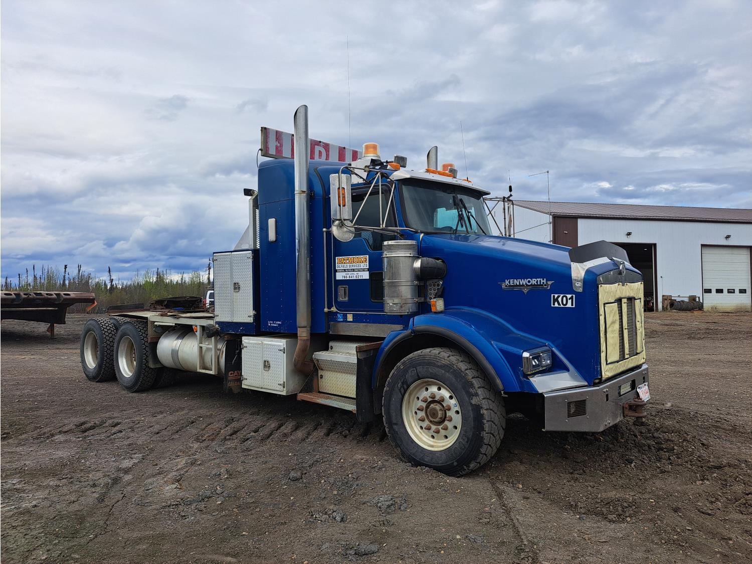 Caterpillar 3406 SINGLE TURBO 14.6 L 475 HP diesel engine, engine heater, engine brake, Eaton FULLER 18 speed manual transmission, 20 inch sleeper, A/C, cruise control, 2-way radio, stereo, aluminum headache rack, tool boxes, beacons, hydraulic winch, New Way air ride suspension, 20,000 lb front axle, 46,000 lb rear axles, diff lock, 266 inch WB, dual steer boxes, 3-way lockers, rear live roll, rear tow hitch plate, 385/65R22 front tires, 11R24.5 rear tires