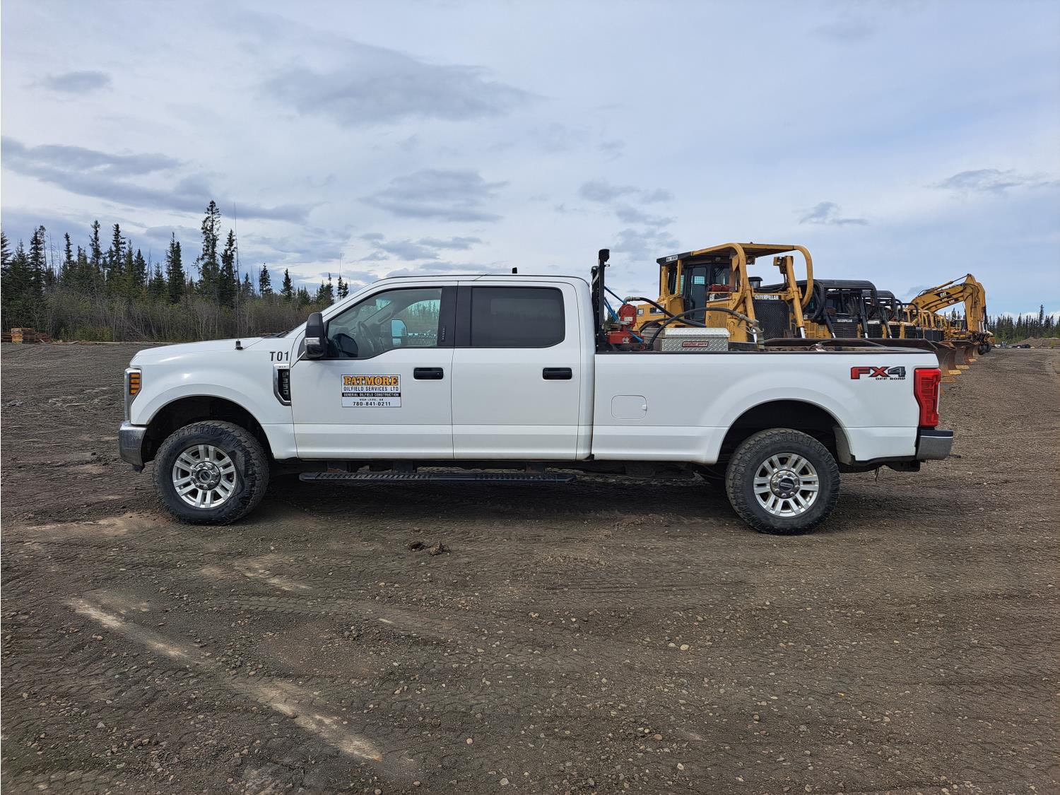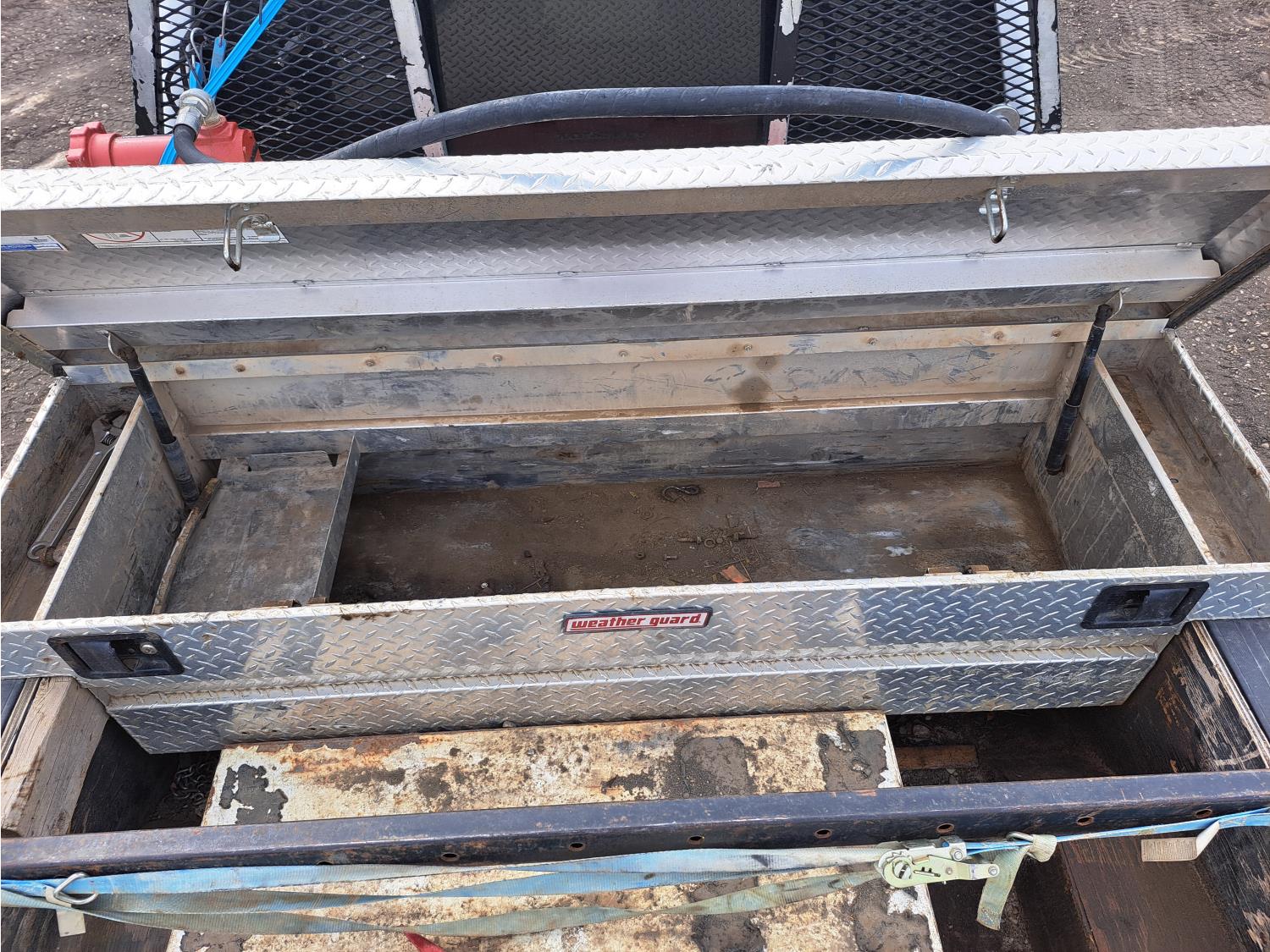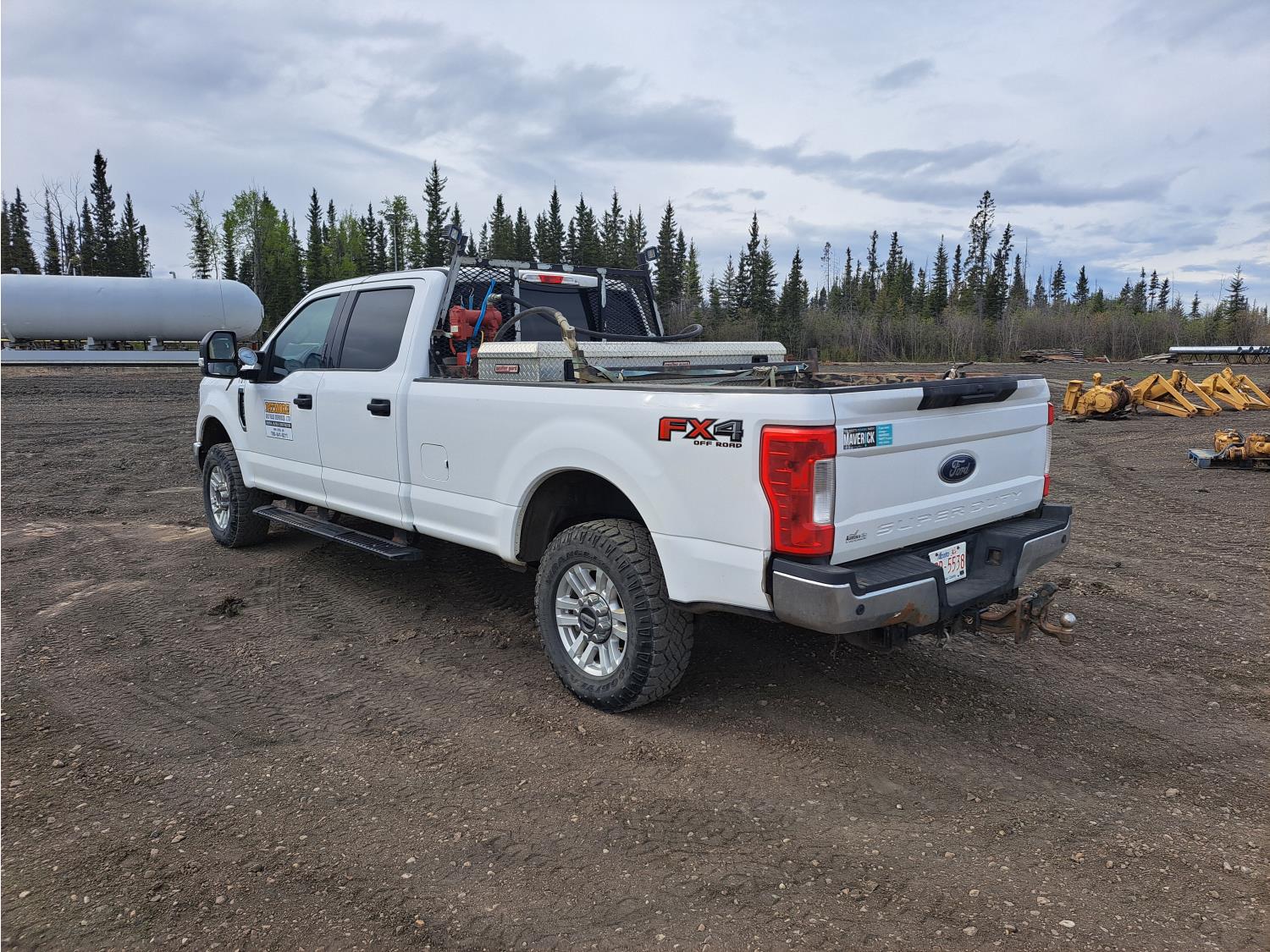 6.2 L, V8, gas, 6 speed automatic transmission, P/W, P/L, A/C, heated mirrors, running boards, 8 ft box, steel headache rack, aluminum toolbox, c/w steel rat pack & fuel tank with electric pump, 275/70R18 tires