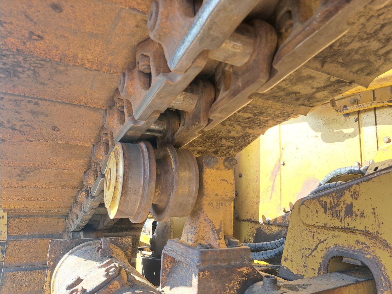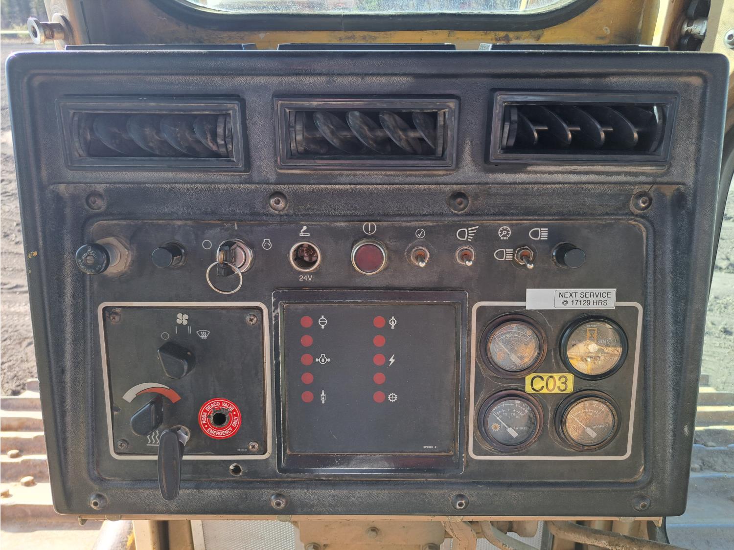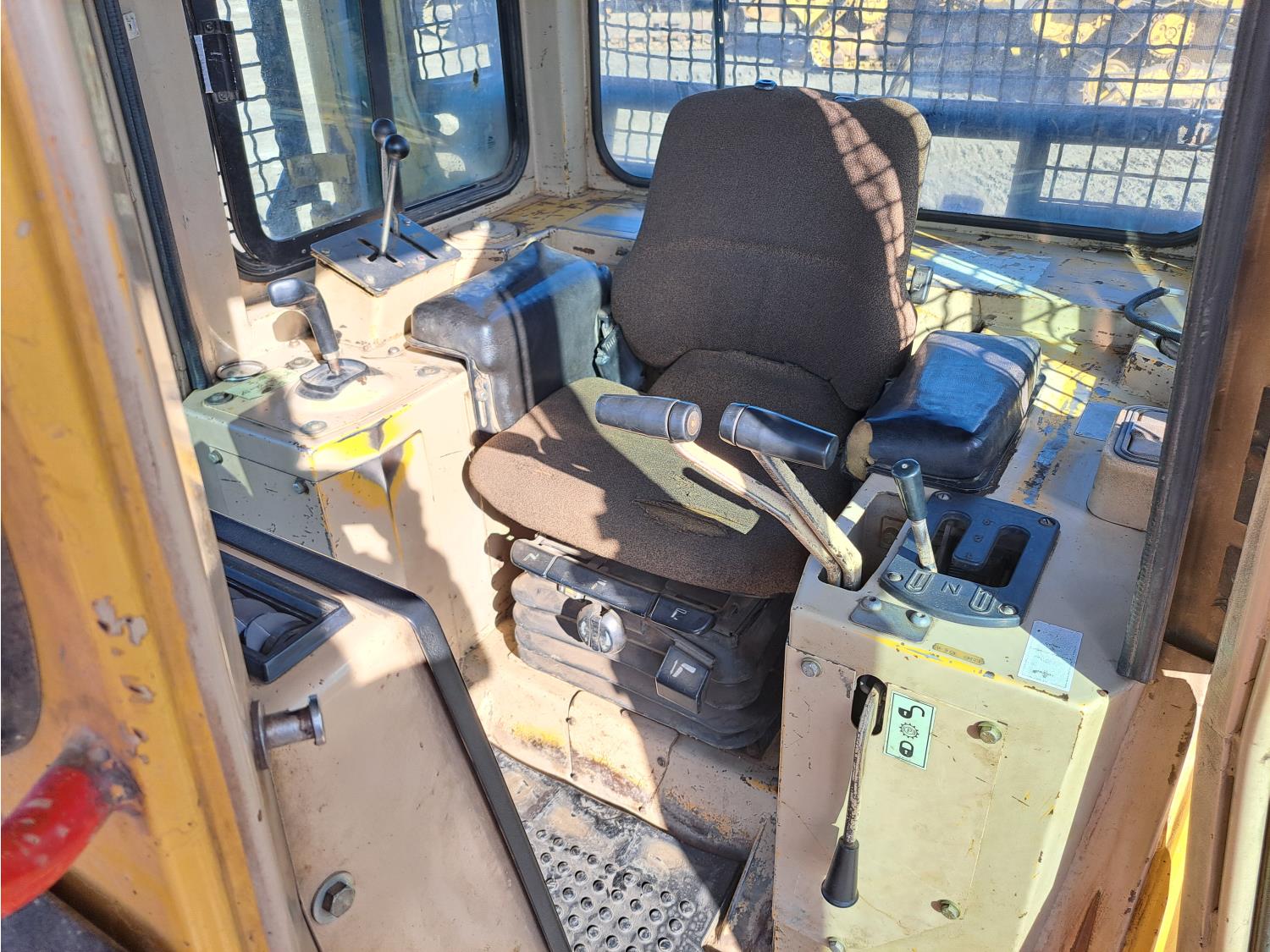 Enclosed cab, air ride seat, diesel engine, powershift transmission, 13 Ft 4 way angle dozer, winch, 34 inch track pads, single grousers