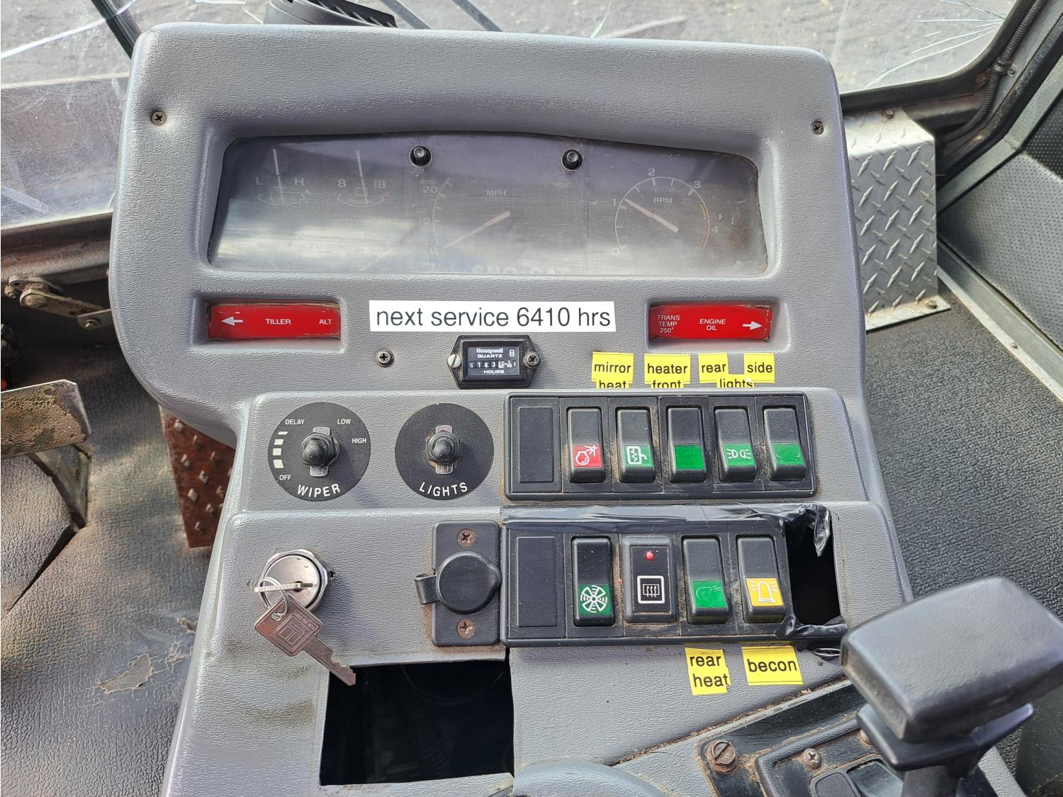 5.9 L Cummins diesel engine, automatic transmission, 8 way 11 ft front blade with hydraulic wings, 26 inch wide rubber tracks