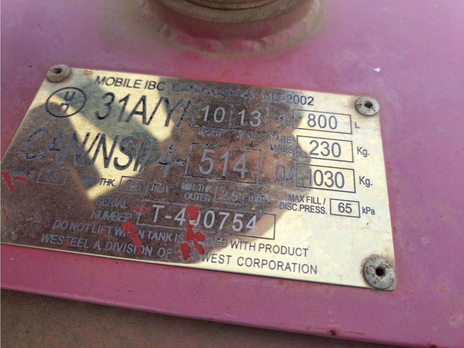118 Westeel 800 Liter Steel Fuel Tank w/ Transfer Pump